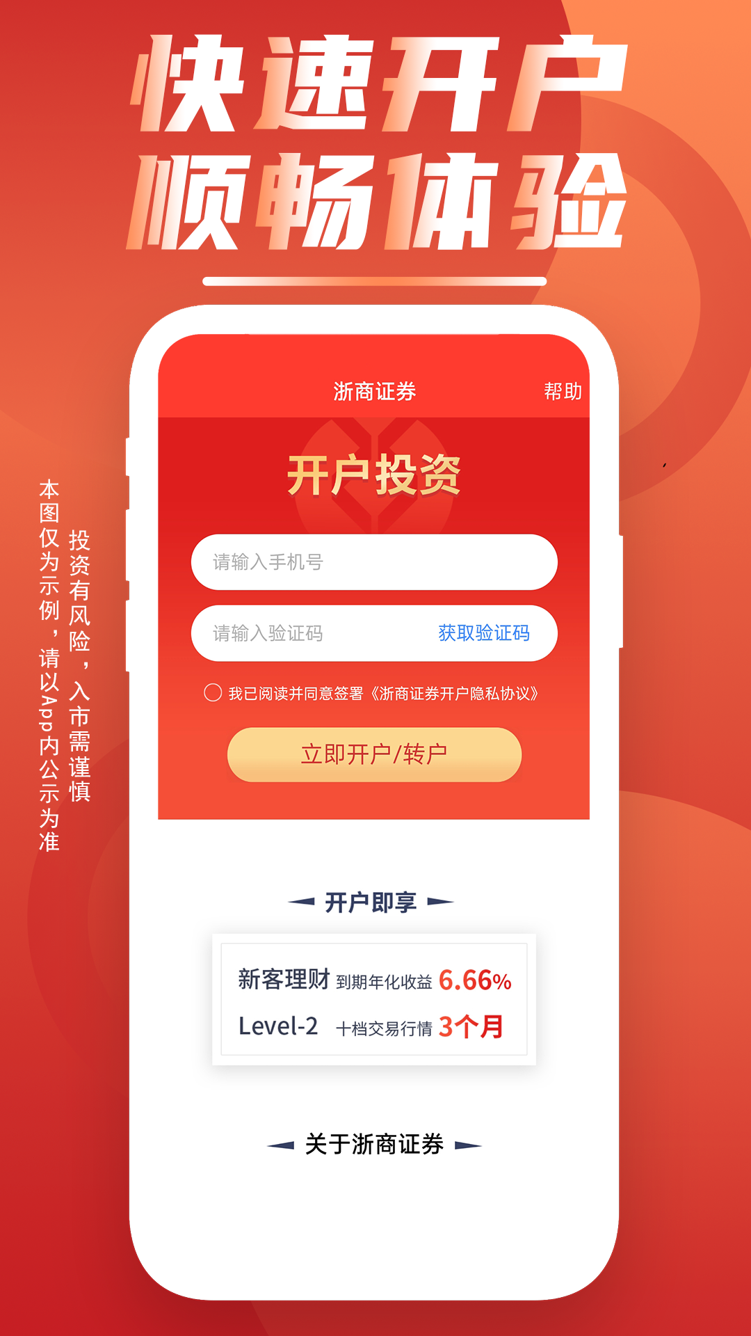 浙商证券开户是浙商证券官方自主研发的股票开户软件,浙商证券为投资者提供线上开户服务,客户可以灵活利用碎片时间,免去临柜环节,享受快速开户体验。快来浙商证券,体验简单开户。