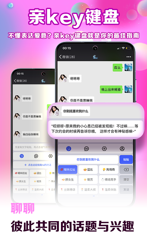 如果是这样的话,那就快来打开亲Key键盘吧!它能够教会你如何聊天,让你顺利收获爱情,摇身一变成为恋爱达人!