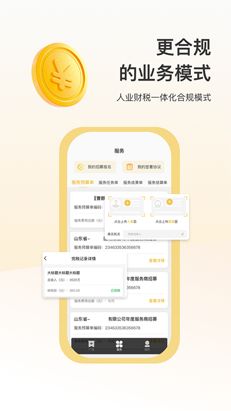 蜂巢众包平台立足共享经济、知识经济、灵活用工、互联网 + 等新经济新业态,将服务经济数字化设定为业务场景,把财税服务当作抓手,以交易鉴证平台为工具,在企业、自由职业者和监管方之间构建起连接。它开创出一种集“灵活用工 + 业务平台 + 财税管理 + 金融支付”于一体的综合创新模式,从而推动灵活用工达成“人、业、财、税”的合规高效协同。