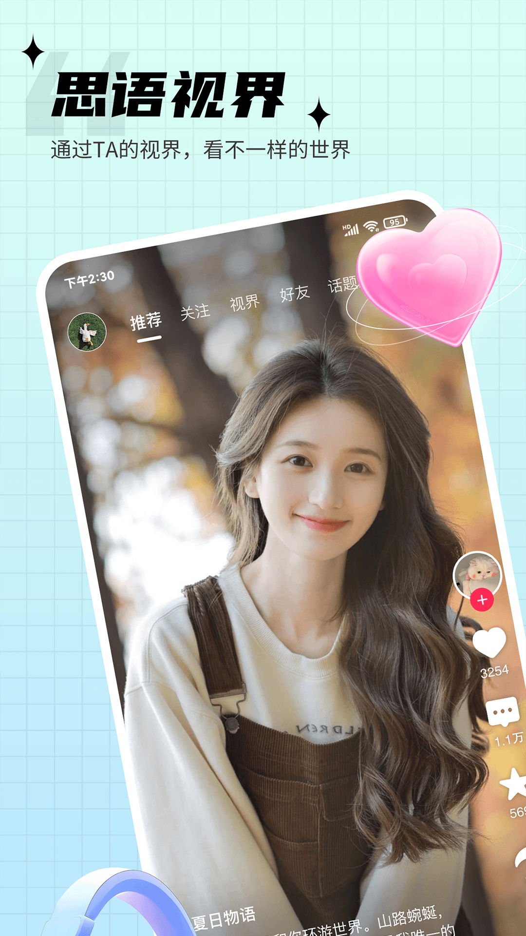 【思语视界】这是一个真人交友的板块,回复率相当高。您能够以文字、图片、视频的形式分享自己的心情,体验与他人互动的乐趣,告别孤单。