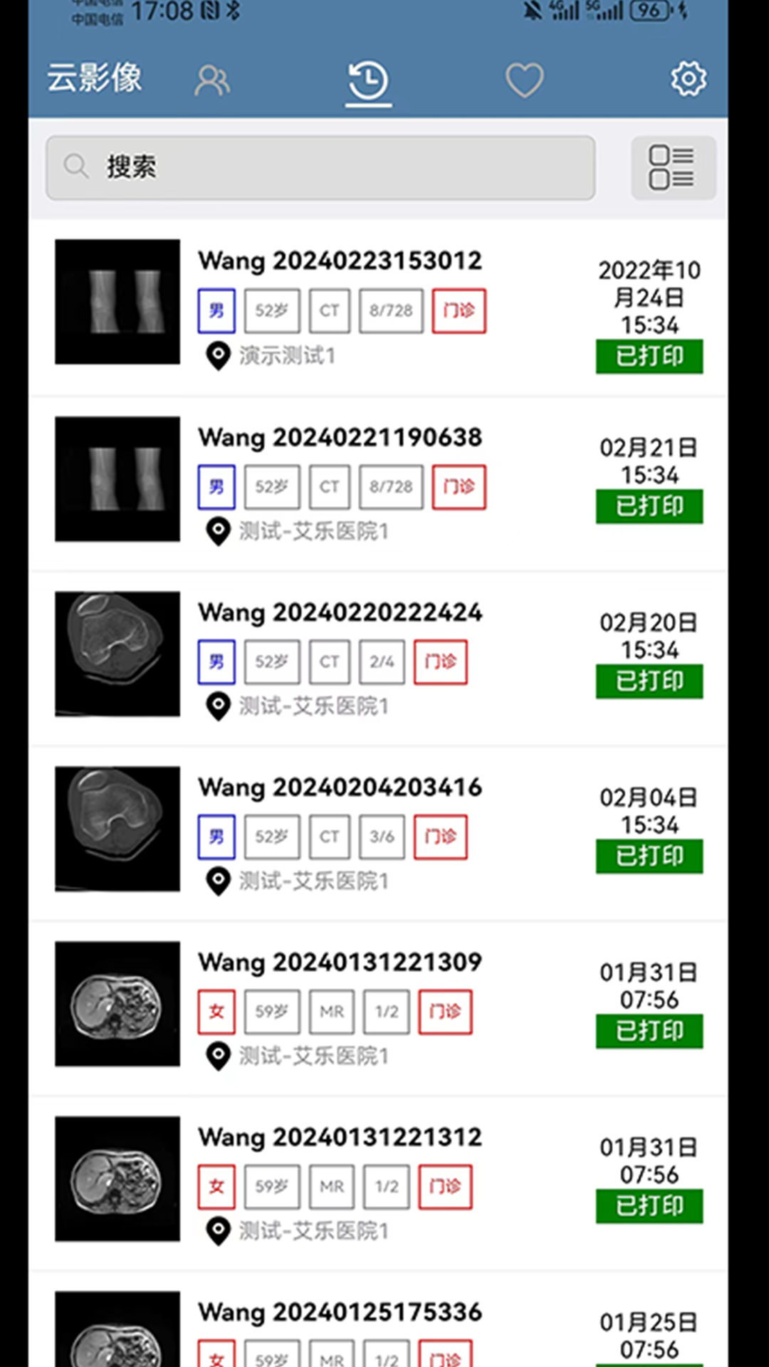 检查列表会显示患者当前检查部位的缩略图像,点击检查列表会进入影像查看,申请单查看,报告书写界面。影像查看与操作分云端处理和本地无损、本地有损处理三种模式,不同之处是,云端处理消耗流量较小,但操作图像会有一定的延迟,本地处理模式会消耗较多流量,操作图像不会有任何延迟,如同本地工作站一样。报告单提供了完整的影像科报告书写流程,如果当前检查有多个部位需要书写多份报告,必须审核完当前报告后,才可以新建新报告。