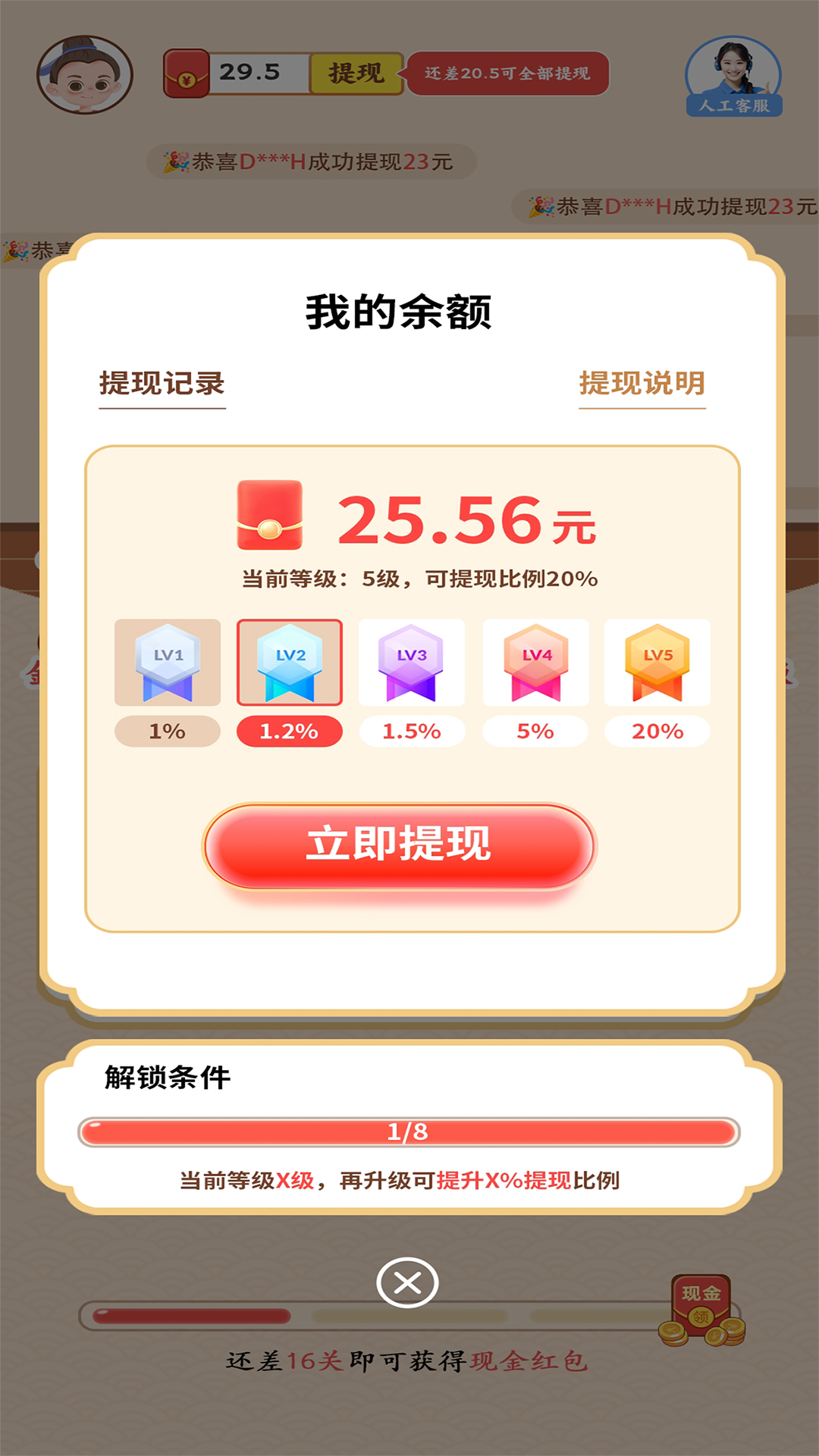 成语答题过关领取金币奖励。金币累积到一定数额后,用户可选择提现至支付宝或微信等账户,真正实现答题赚钱的乐趣。