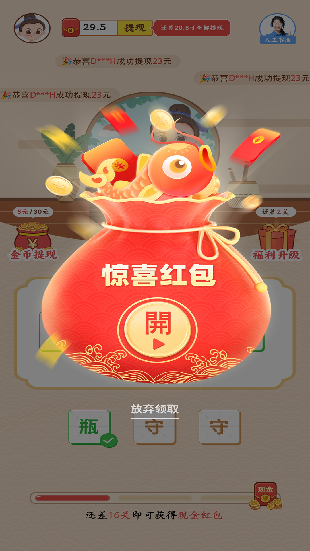 成语黄金屋是一款寓教于乐、融合传统文化与现代科技的创新型成语赚钱软件,旨在通过趣味横生的成语答题挑战,让您在享受学习乐趣的同时,还能赢取实实在在的现金奖励。