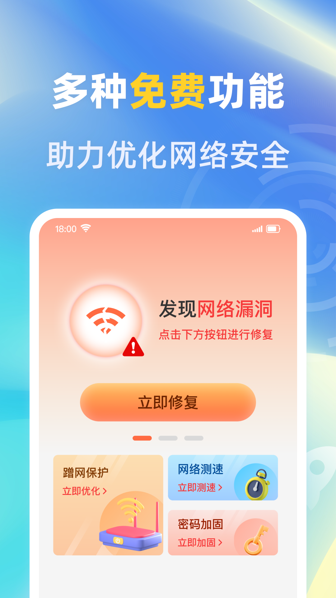 1、网络防护:实时监测您的网络环境,发现潜在的安全隐患,一键优化防护,确保您的上网体验安全无忧。