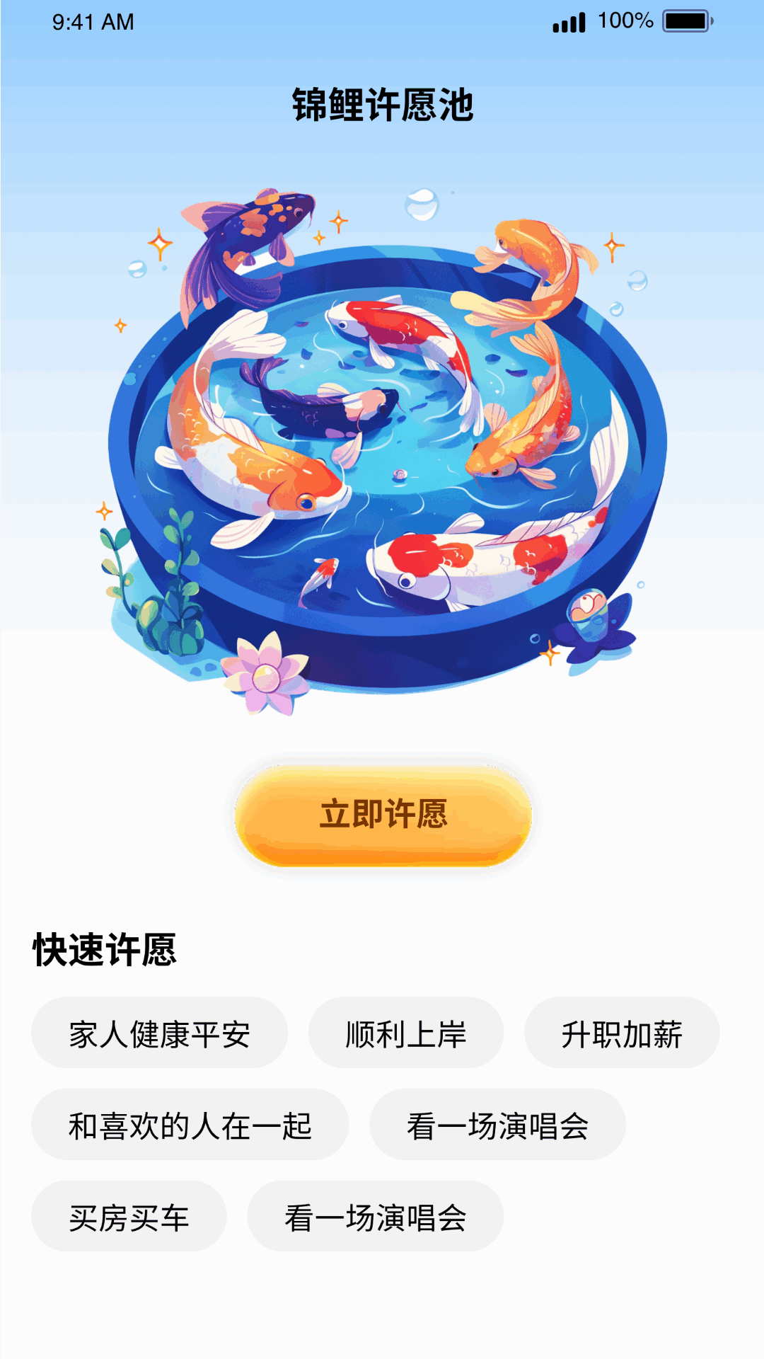 【锦鲤许愿】提供了一个锦鲤许愿的平台,你可以在这个平台上许下你的想法,