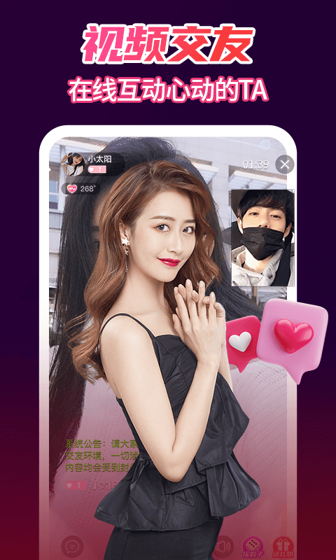 【魅力释放,芳心触动】在个人视频交友中,动态视频聊天、语音美颜、丰富的图片圈子社交,能够展现出独特的成年人魅力,只要兴趣相投就可以闲聊约会。