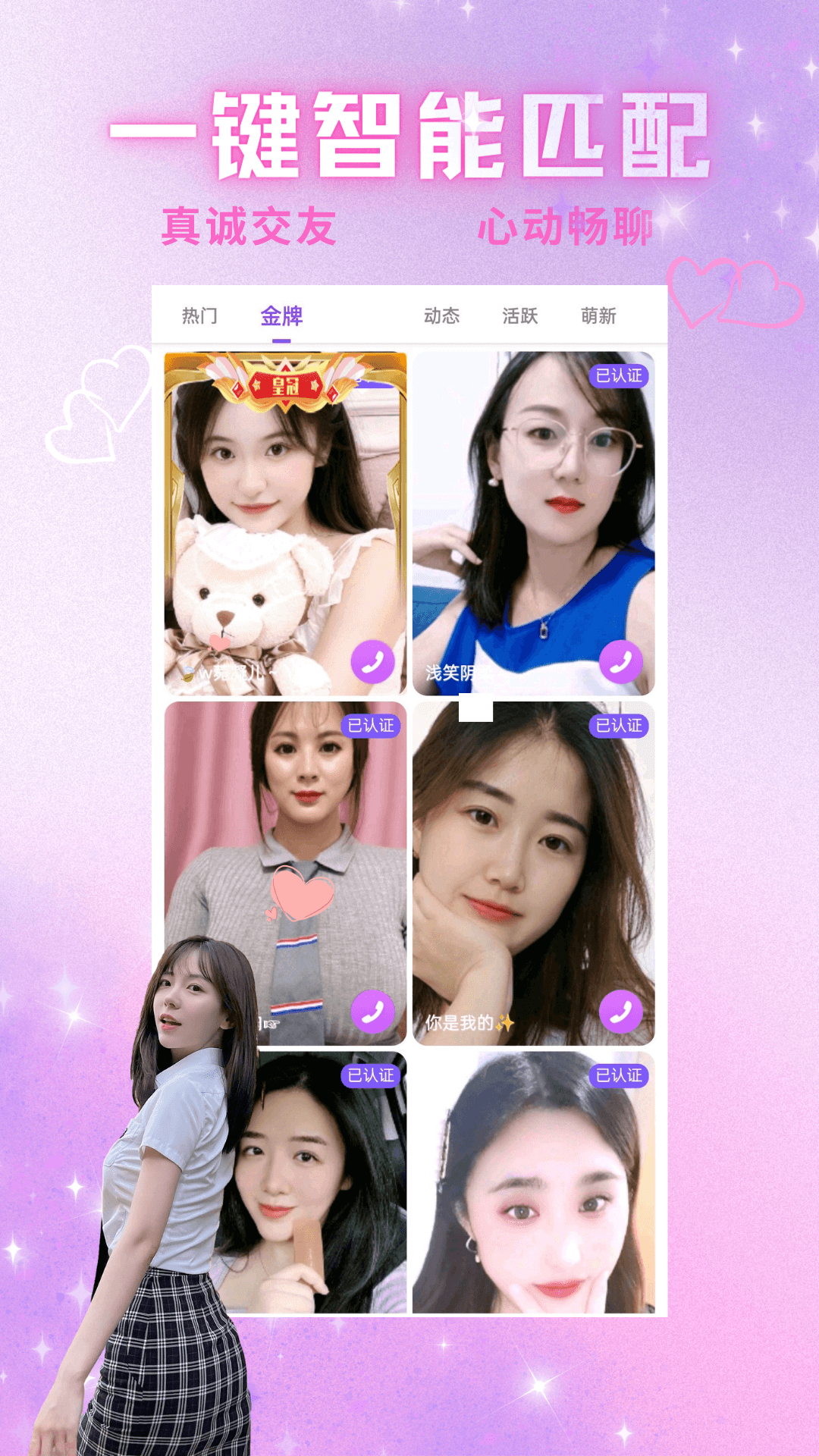 平台用户均为真实注册,且经过实名认证,能够高效地为你匹配心仪的对象。这里提供视频、语音、文字等多种沟通方式,适用于众多场景,已为上千万用户创造出更多恋爱的契机。