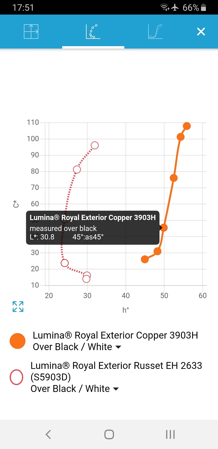 您可以像转动手中的色板一样转动移动设备,从不同角度观察效果颜料颜色的变化;通过黑白底材评估颜料的遮盖力;还能观察实色颜料在铝冲淡时的色彩表现。