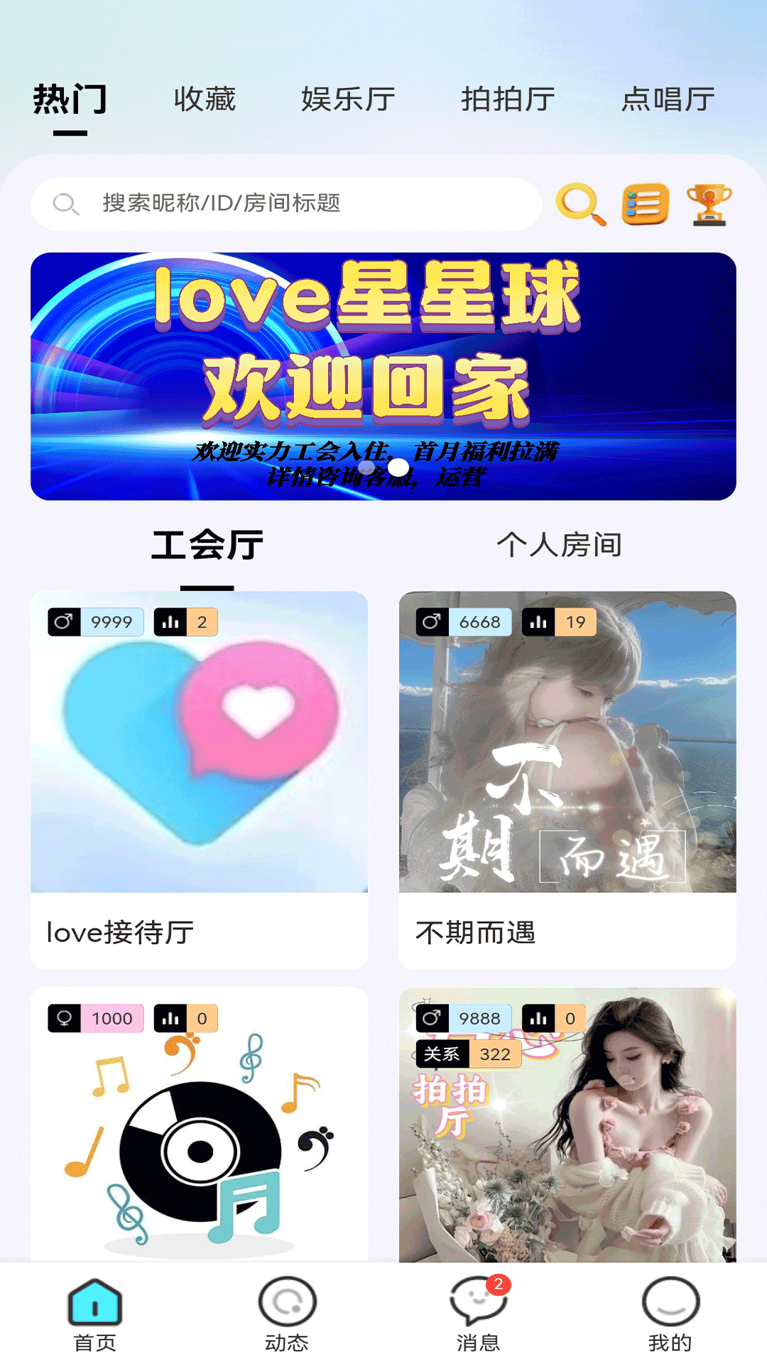 在Love星星球里,你可以尽情享受语音聊天的乐趣,通过声音来结交朋友。这里还有线上K歌的功能,能让你尽情欢唱。直播语音房也是一大亮点,在语音房中,不仅可以通过礼物打赏来表达喜爱,还能玩一些小游戏来消遣时光。它支持一对多、多对多的语聊模式,为用户提供了丰富多样的社交体验。