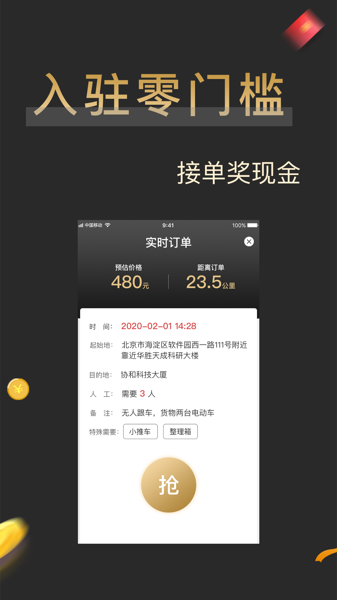 搬配,是一款专门提供搬家运货服务的应用平台。有上手快捷易用、订单优质量大、抢单机制透明公正的特点。