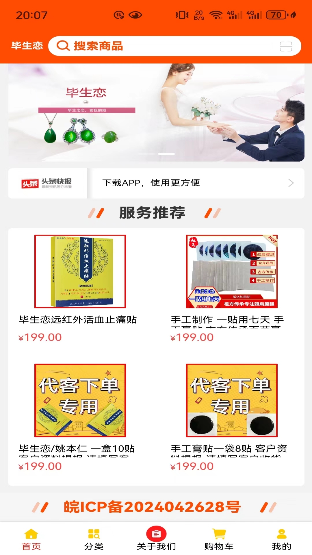 毕生恋健康小店APP由合肥毕生恋电子商务有限公司开发并运营。这是一款专注于销售优质日用品以及二类医疗器械产品的APP。