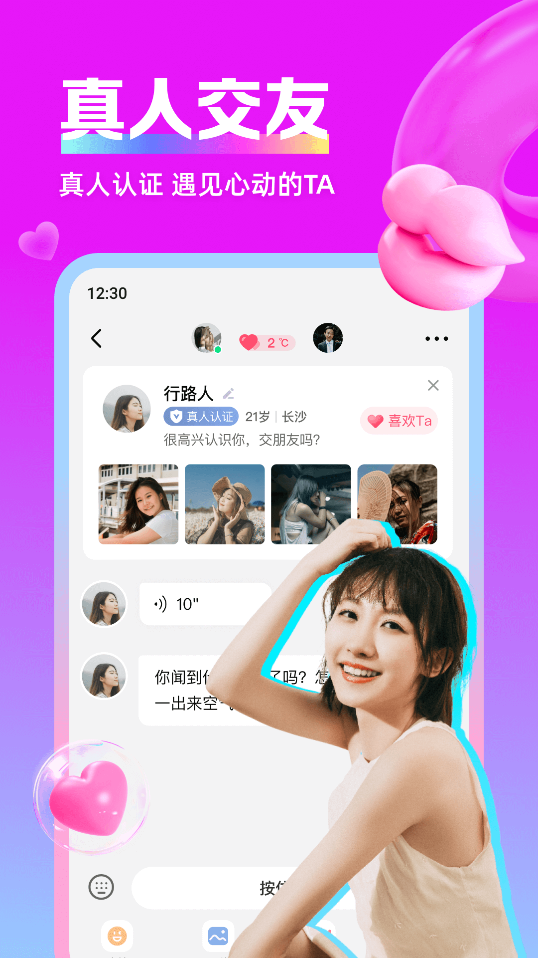 思遇陌生人聊天视频寻交心情缘是一款走心且靠谱的社交app,软件通过聊天、语音及视频的方式帮助用户建立稳定的社交关系,为快节奏的当代社会提供了一个轻松有趣的社交平台。在这里,你可以通过文字、语音及视频和其他人分享你的生活,并通过努力找到自己的朋友、知己甚至心仪的另一半~