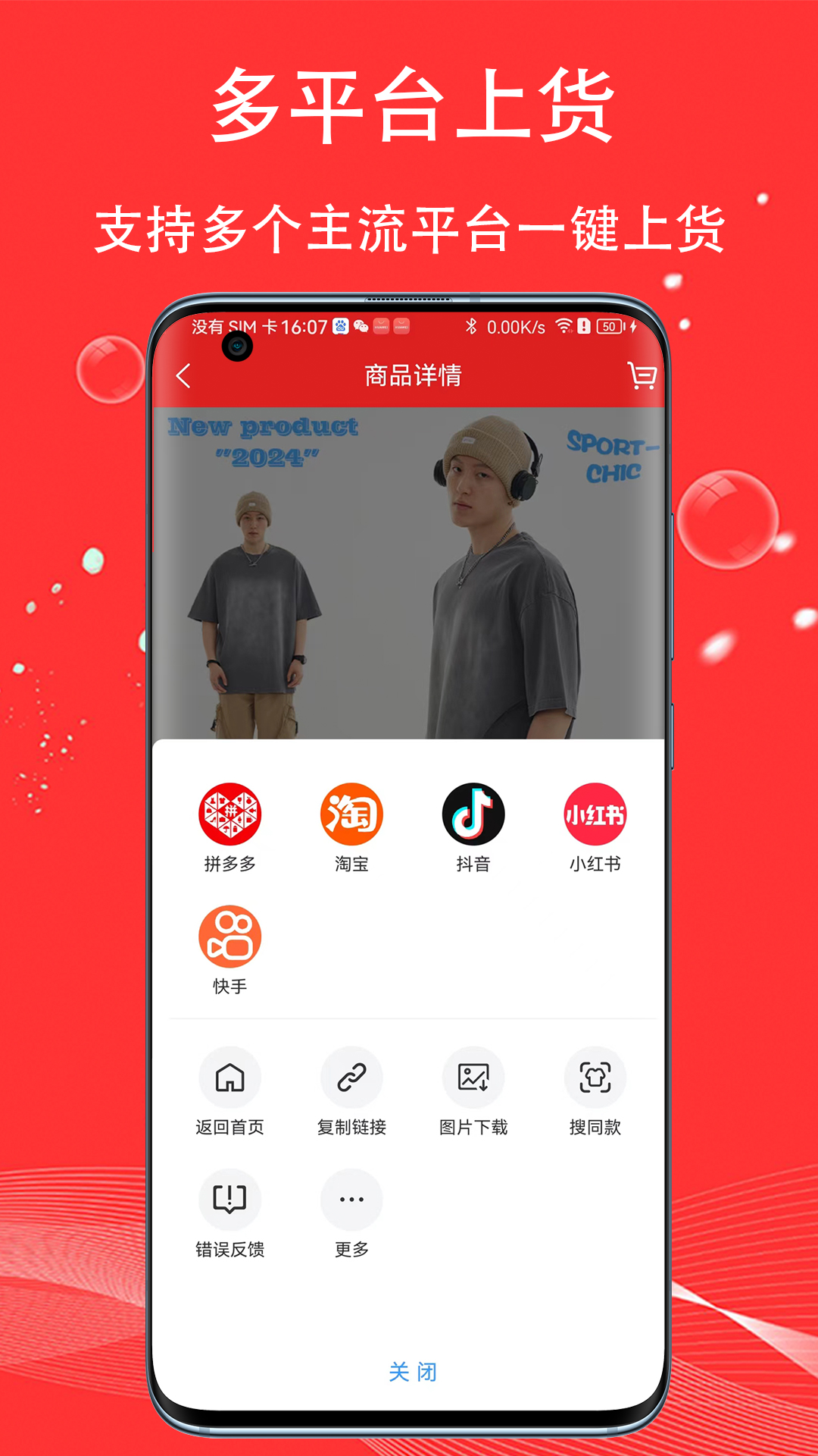 - [一键上货]:该平台支持向淘宝、天猫、京东、拼多多、抖音等大众平台进行多平台一键上货,让您足不出户就能轻松赚钱。