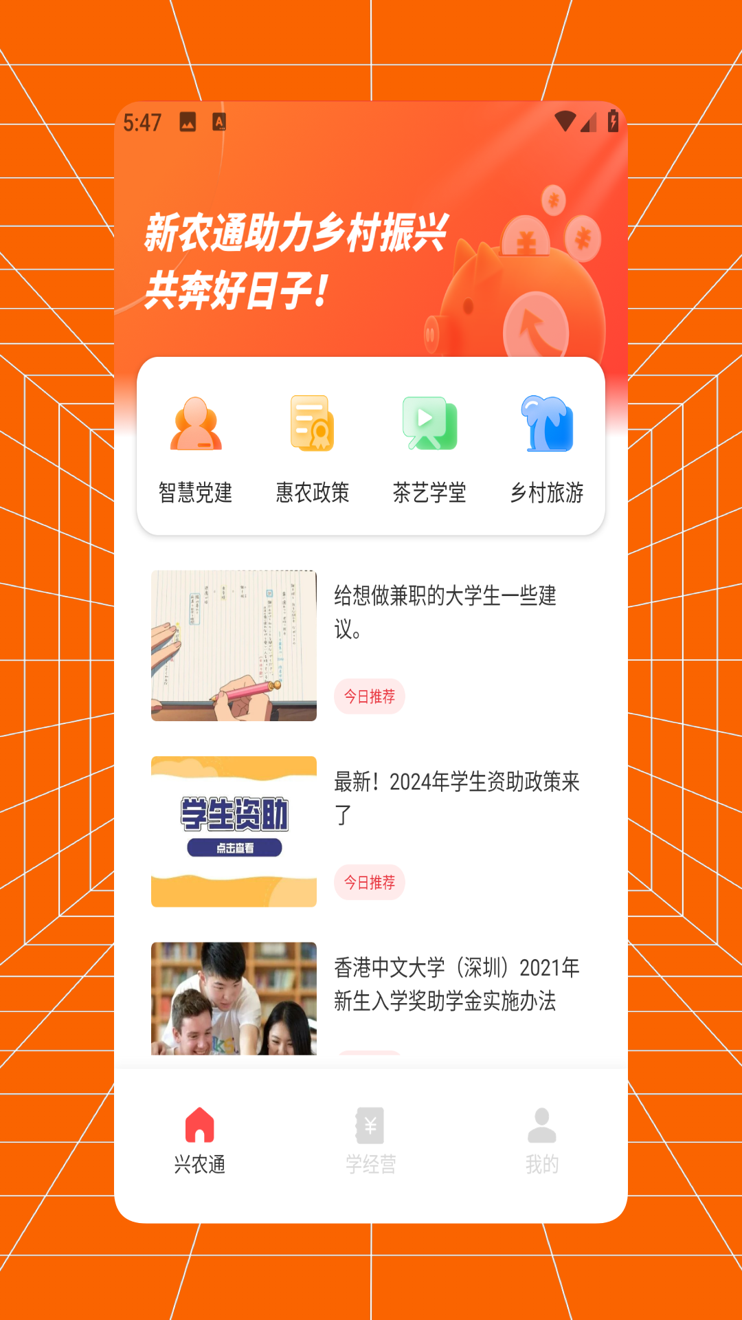 2. **惠农政策版块**:提供助学政策和贫困扶持政策等多方面的惠农政策资讯。这些政策信息能够让农民朋友及时了解国家在教育资助以及贫困帮扶方面的政策内容,从而更好地享受政策带来的福利。