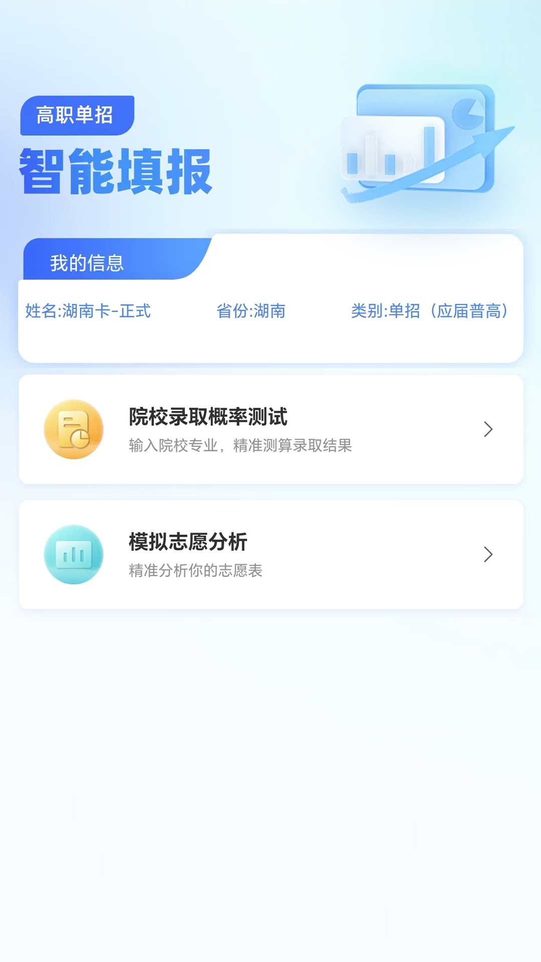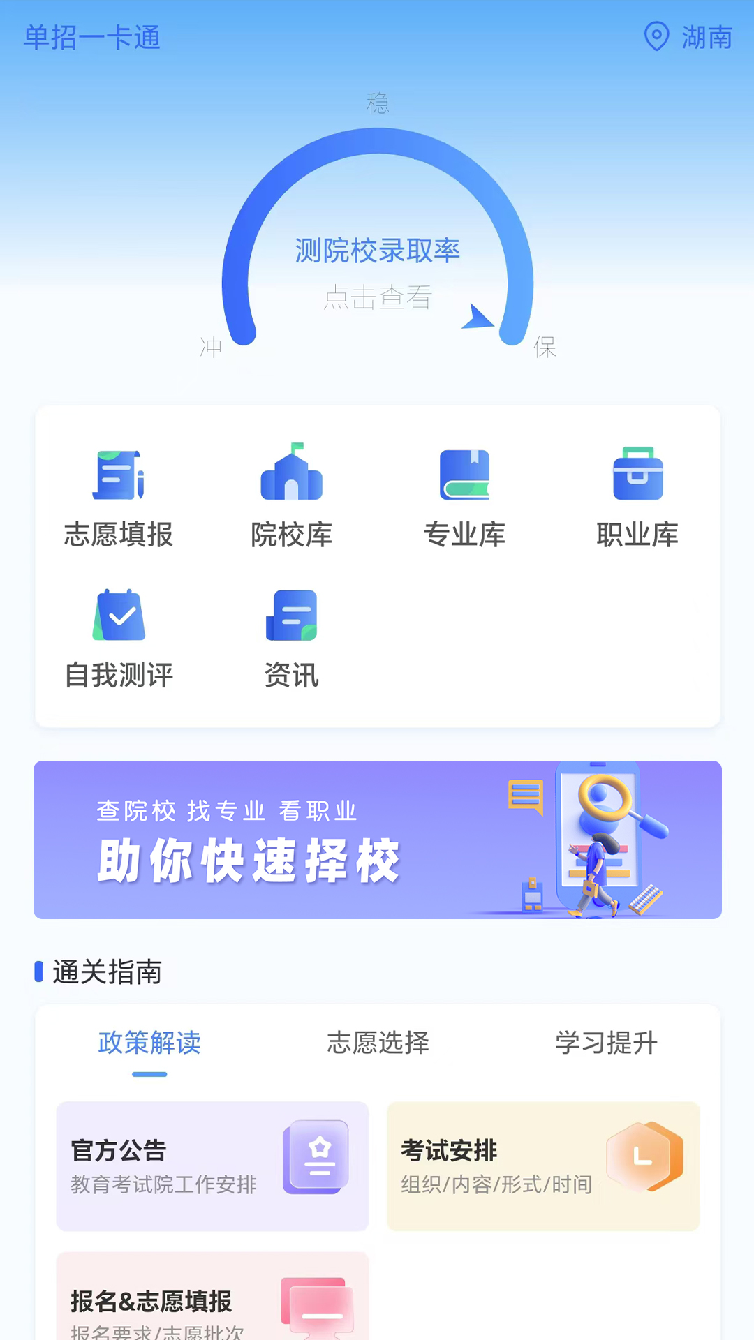 单招一卡通,提供线上院校、专业、职业查询,单招历年数据查询,单招政策解读,生涯测评多维度推荐专业,智能填报多种查询方式快速完成志愿表。