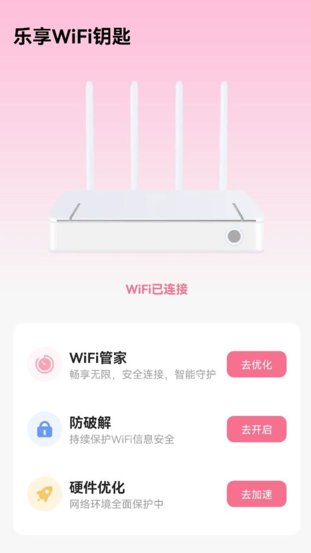 乐享WiFi钥匙,它不但是您网络安全的保护者,更是您生活中的快乐伙伴,让您的每一次上网都充满安全感与乐趣!