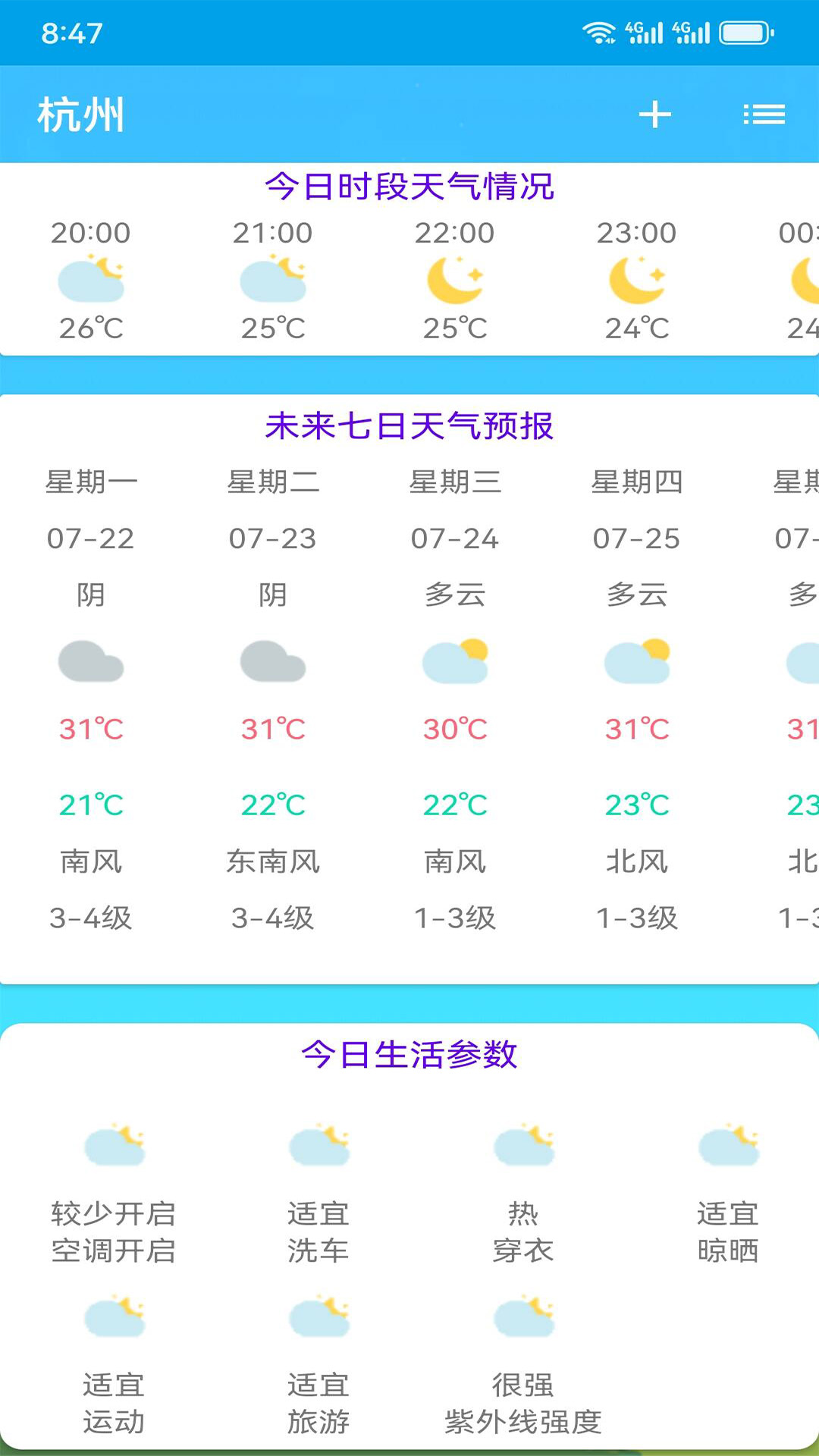 它就像您专属的天气预报员,具有24小时天气预报且能连续查询5天的功能。您可以轻松地添加或者删除其他城市和地区的天气预报,这会给您的出行安排带来极大的便利,真的是查询天气预报的得力助手。而且它操作简单,您还能够添加和管理更多的城市和地区。这是一款精致又简约的天气预报查询手机应用,是手机上必不可少的天气预报播报软件。