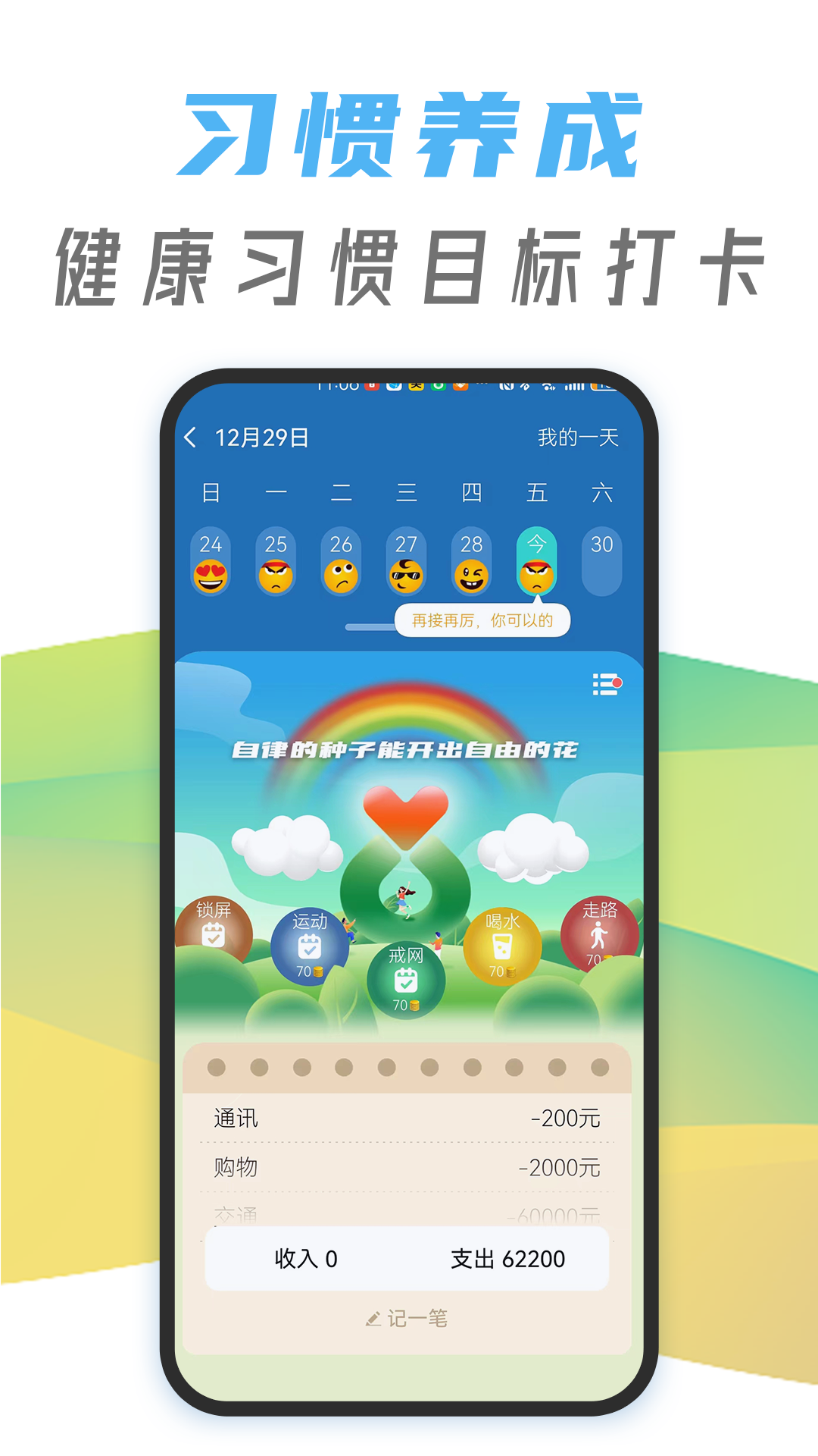 休指符是一款手机管家类应用,其主题围绕着自律与健康,致力于倡导健康的网络生活方式。