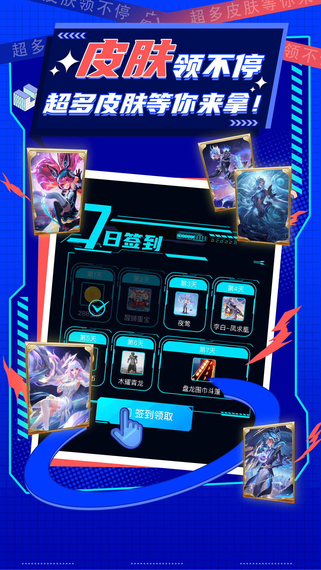 这是一场专属于皮肤喜好者的狂欢派对!在这里,每天都会不定量发放皮肤哦。只要你积极保持活跃状态,多多参与其中的活动,用不了多久,你就能在皮肤收集之路上成为王者啦。不管你心仪什么样的皮肤,都可以自己来领取!