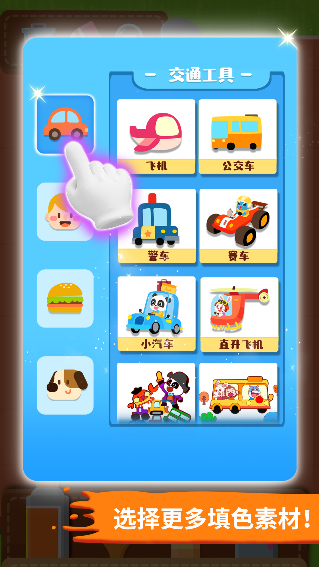 丰富多样的填色主题:有海盗船、美人鱼之类的,还包含了交通工具、人物等多种主题呢,这能给宝宝提供更多的创作空间哦。