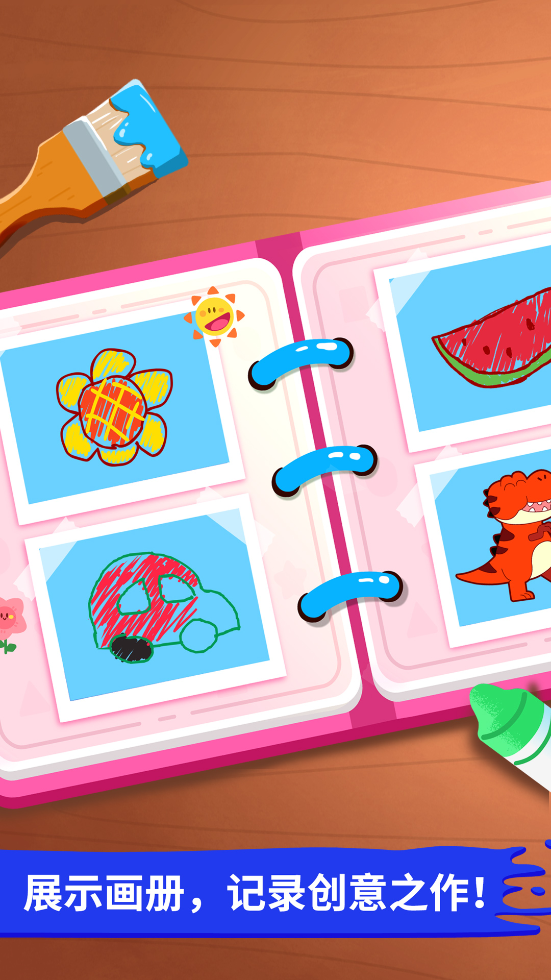 超可爱的绘画作品集:只要点开画册,就能查看作品集啦,宝宝的每一幅绘画作品都会被记录下来哦,宝宝们看到后肯定会充满成就感的。