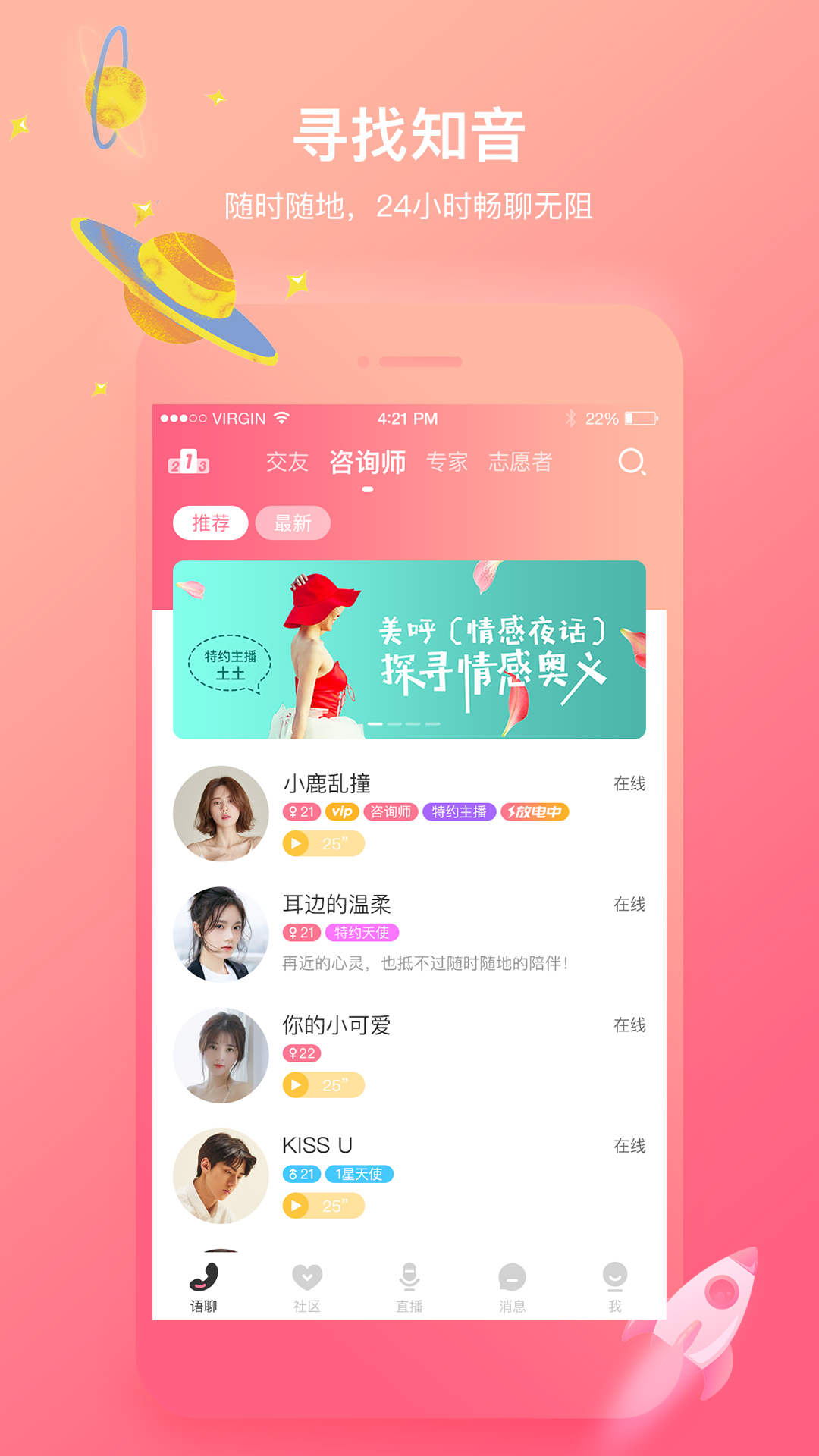 【声控群聊直播】这是声控党的天堂,在这里你能遇见灵魂契合的人,邂逅美好的相遇。