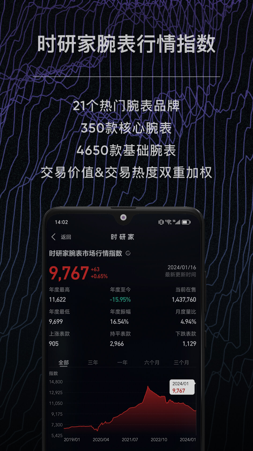 在这个平台上,能够为用户提供全球腕表的专业参数以及实时行情价格,并且推出时研家腕表行情指数,精确地对二级市场动态进行分析。此外,还整合了行业内实时的热门资讯,致力于打造成为腕表领域的百科全书。