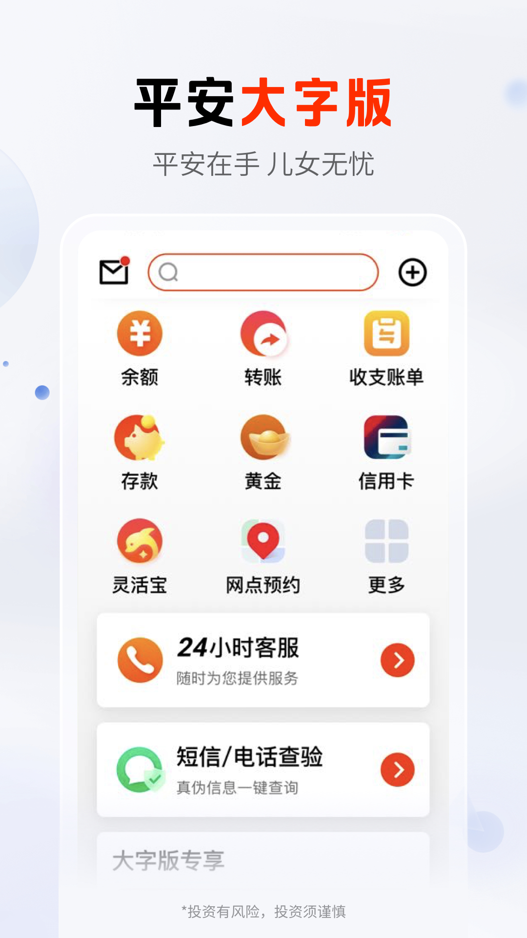 大字版全面优化,易理解、好操作,同时提供防骗宝典专区,为老年客户的金融生活保驾护航。