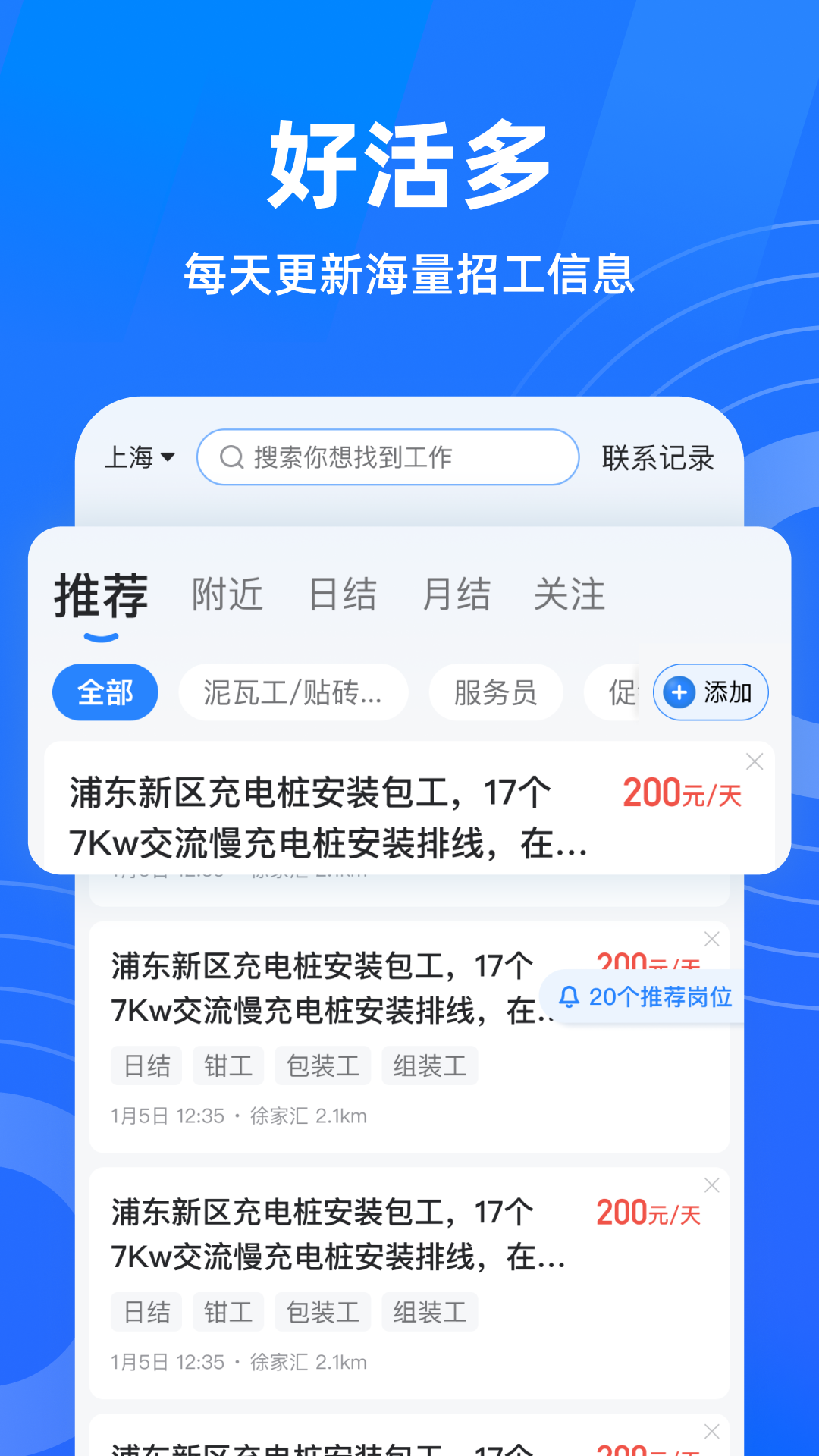每天都有数量众多的招工信息可供选择,找活变得简单又轻松。