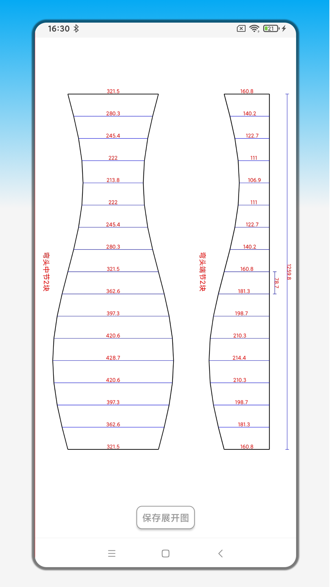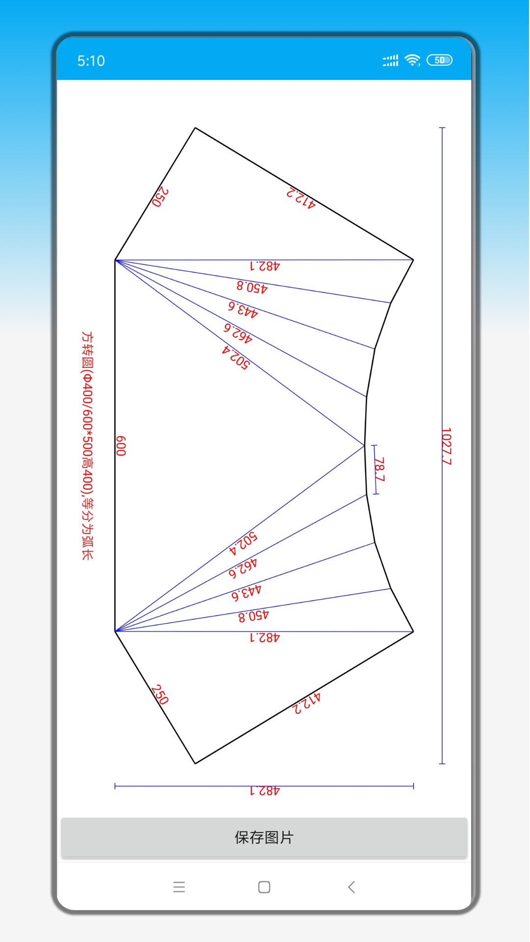 “一键生成展开图”,手机钣金展开的独特功能之一。钣金展开功能不仅涵盖了弯头、三通、圆锥管、天圆地方、矩形变径、封头、螺旋叶片、螺旋楼梯、凸五角星等几十个常用管道构件,而且支持自动输入数据生成展开图。只需简单几步操作,您就能在现场下料时轻松生成直观、方便的展开图,媲美甚至超越了电脑版的金林钣金展开。