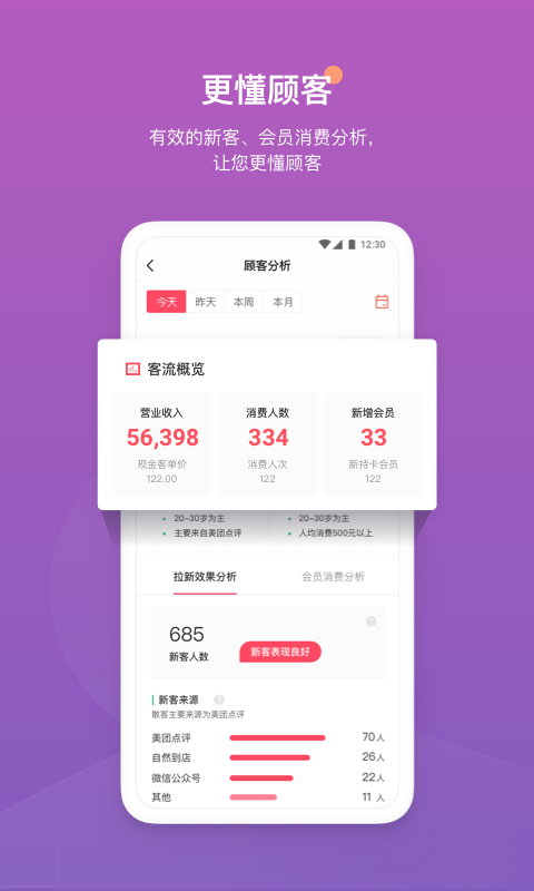 【生意分析】为老板提供全方位的数据分析,可以随时随地的掌握生意状态,让老板更了解生意更懂顾客。