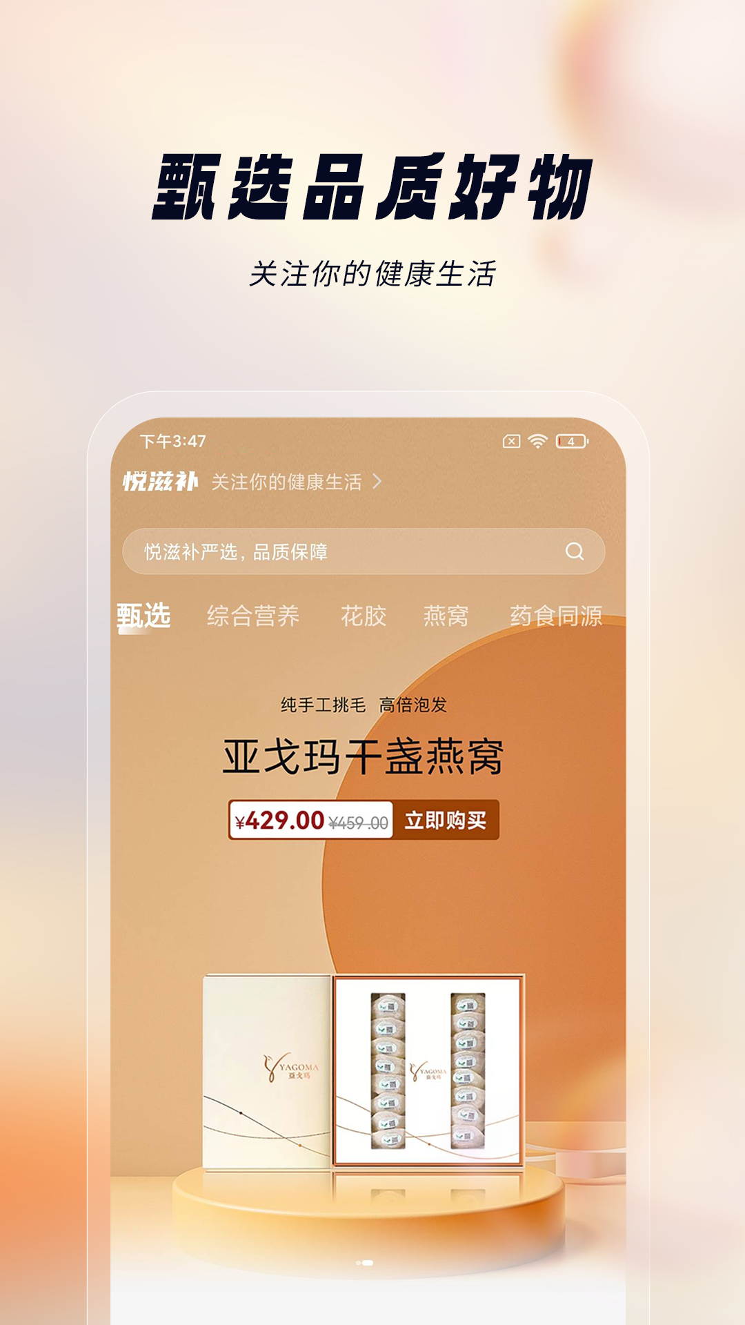 悦滋补APP是一个专注于滋补品与营养品销售的电商平台。我们具备专业的团队,该团队专门负责选品与搭配相关工作。在运营过程中,悦滋补APP始终坚守品质优先的原则,同时又能确保提供优惠的价格。对于众多关注营养、喜爱健康生活的用户而言,悦滋补APP是一个能够提供养生参考并且推荐健康好物的优质平台。