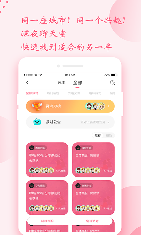 4.实时匹配让用户用缘分寻找那个心仪的异性,告别选择恐惧,让您惊喜不断,更高效的交友。