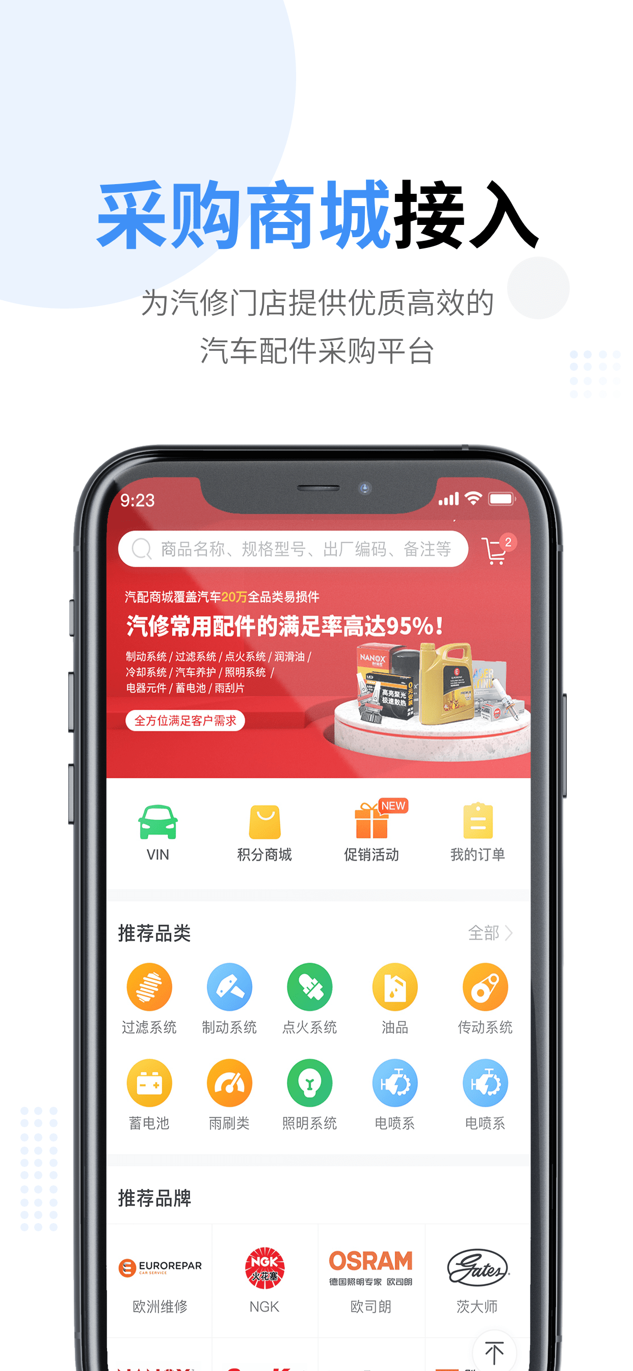 【采购商城接入】这一功能,为汽修门店打造了优质高效的汽车配件采购平台。