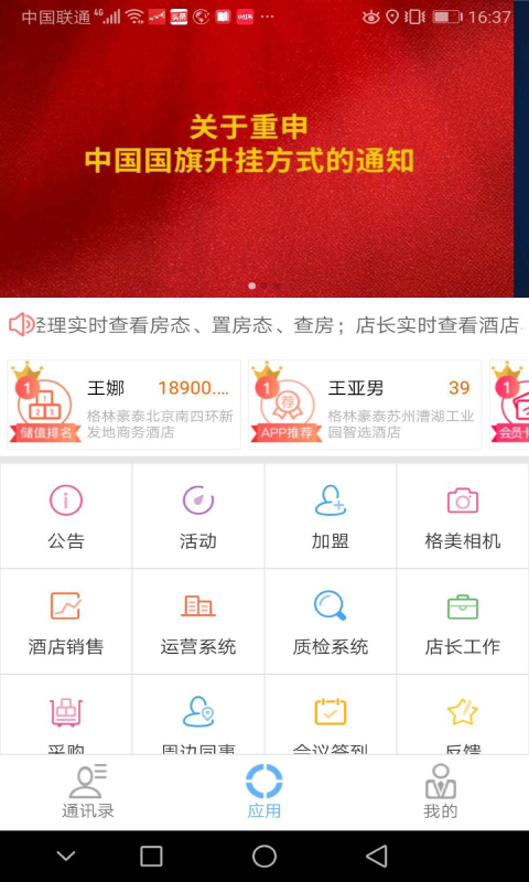 KOPMS是格林酒店集团开发的一款移动办公平台。包含业主,酒店经营数据,店长工作,销售,客房,点评回复,采购,水印拍照等模块,使用KOPMS让您轻松实现高效移动办公,随时随地了解酒店经营数据,实时房态,剩余房量,每日577数据。