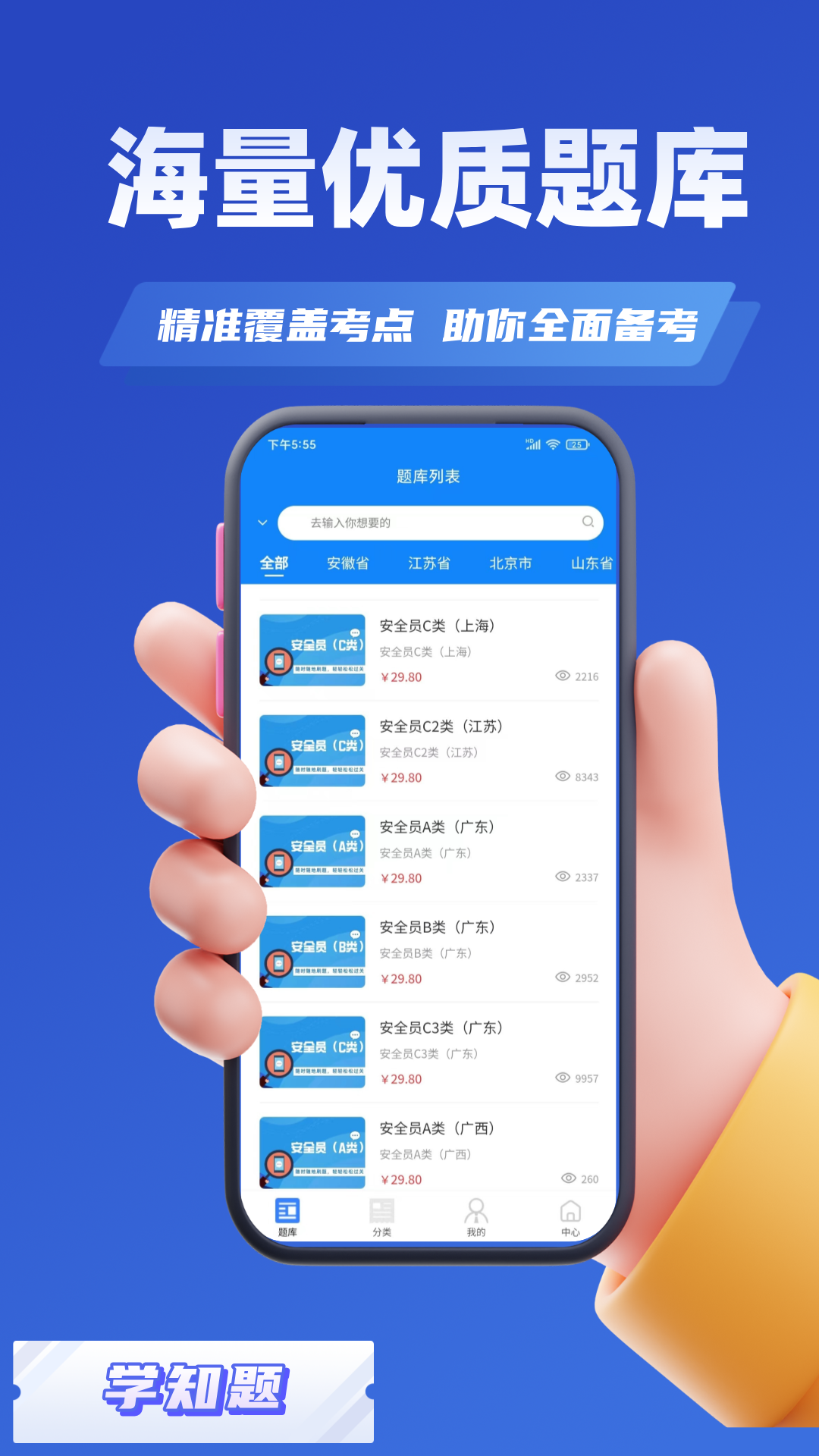 安全员考试学知题涵盖安全员考试宝典 - 安管人员题库,包括建筑施工企业三类人员(安管人员),即安全员A证、安全员B证、安全员C(C1、C2、C3证)考核题库等。如果您想要在安全员备考中顺利通关,那么安全员考试宝典、安全员考试通是不错的选择,它们可作为安管人员考试的得力助手,提供安全员abc证书考试题库。