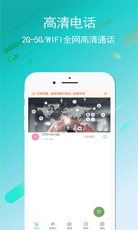 【免费电话】注册即可获赠高额通话时长,零月租,不消耗流量,超低成本的资费能为您节省多达95%的话费。