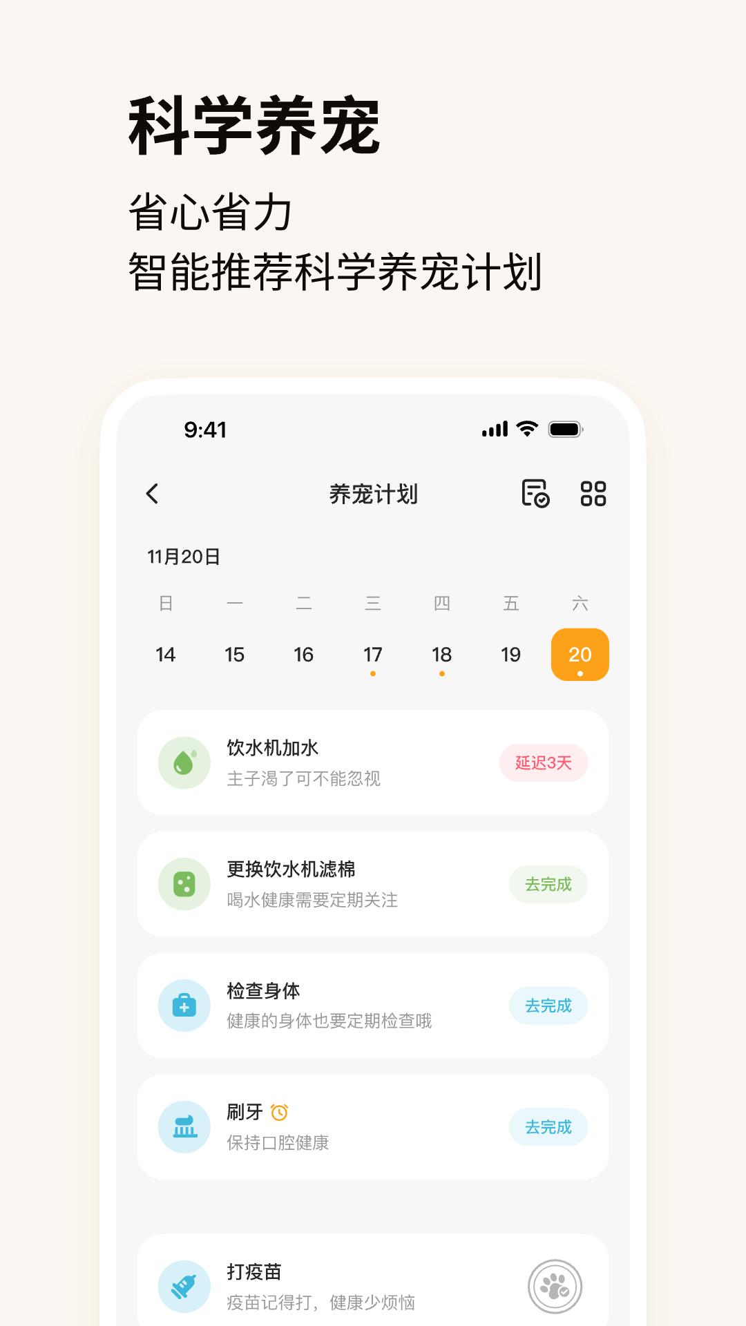 3、智能推荐养宠计划,新手铲屎官也能迅速上手;