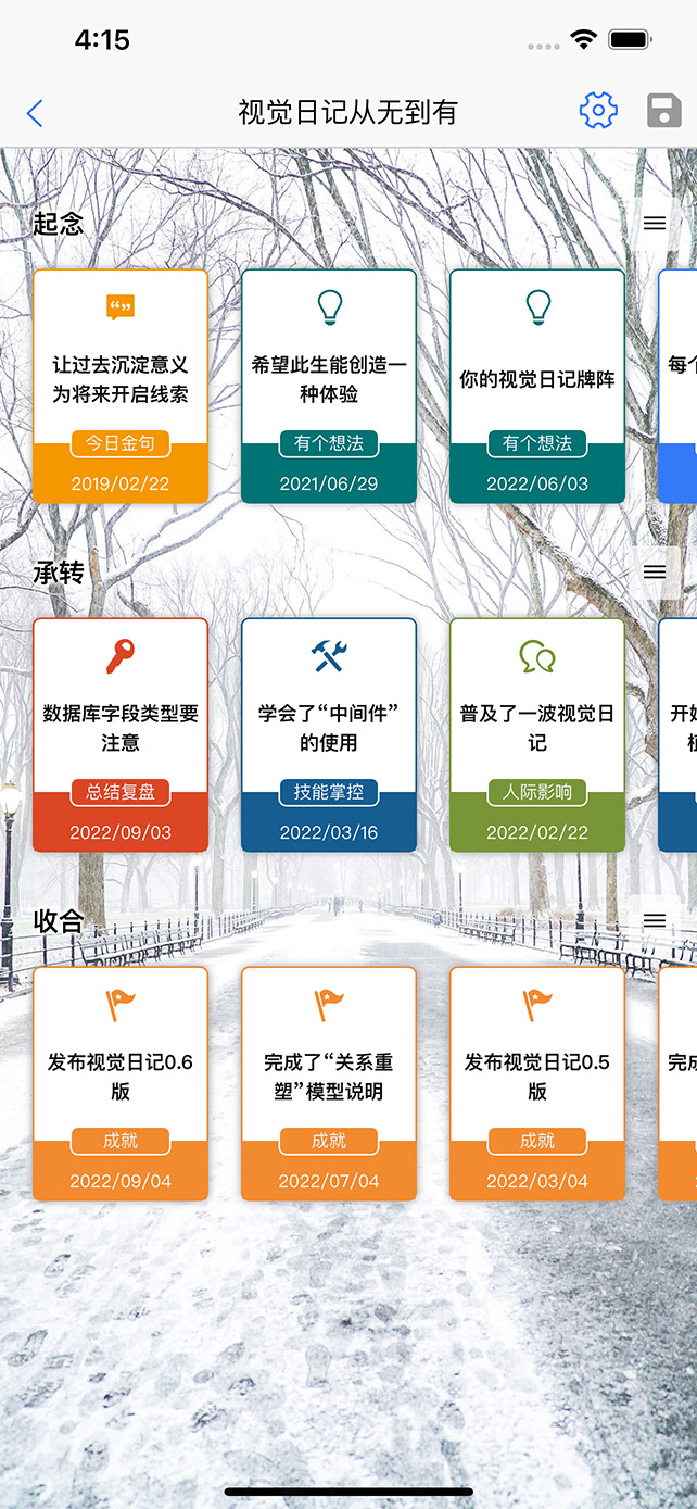 - 生活节点、总结复盘、成就:利用这些模板把努力之后的心情沉淀下来,转化为一种心境。