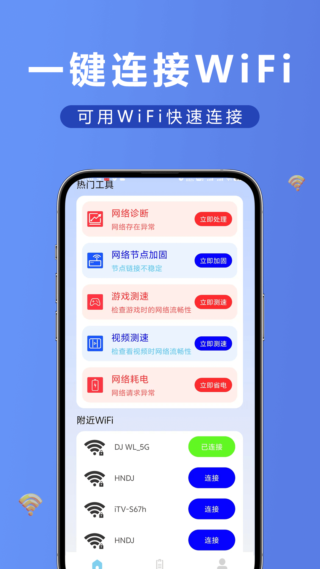 好用爆的免费一键快连网络工具,应用体积小,功能全面,操作易简单的免费wifi工具类应用。