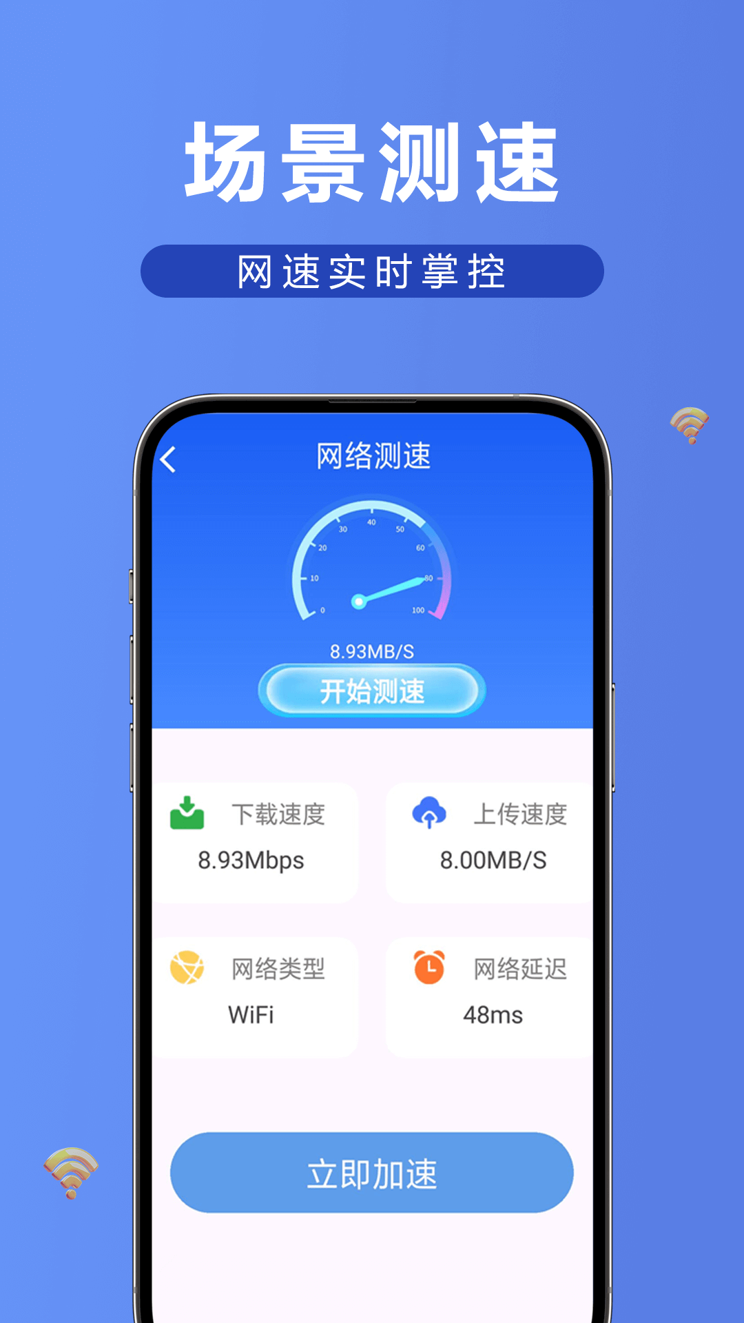 网络很慢,一键测网络加速,净化网络使用环境,提高网络速度。
