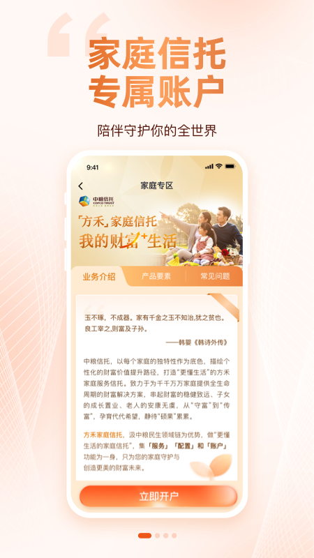 中粮信托秉承客户至上的经营理念,以完备的风险管理控制体系为基础,以高素质的人才为支点,以创新服务为手段,坚持阳光、创新、稳健、务实的发展道路,致力于奉献优质金融理财服务,实现客户、股东、员工价值最大化。