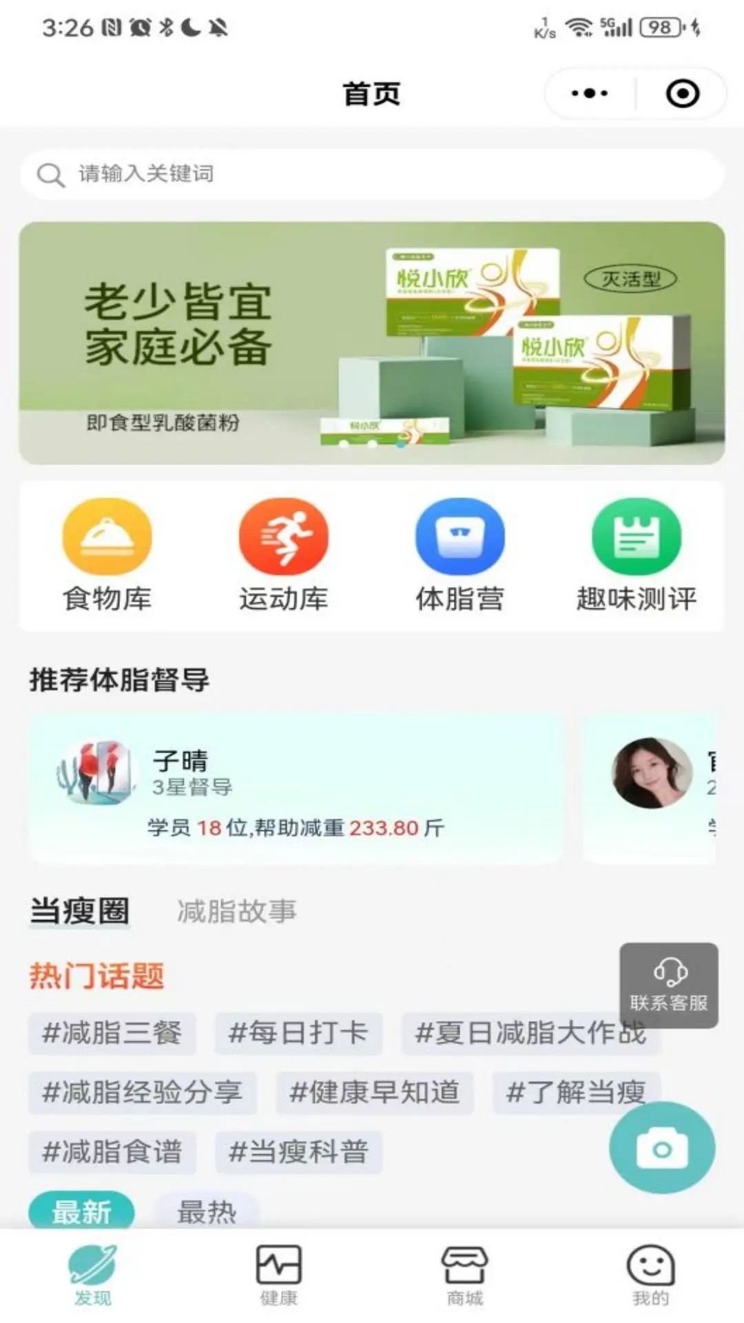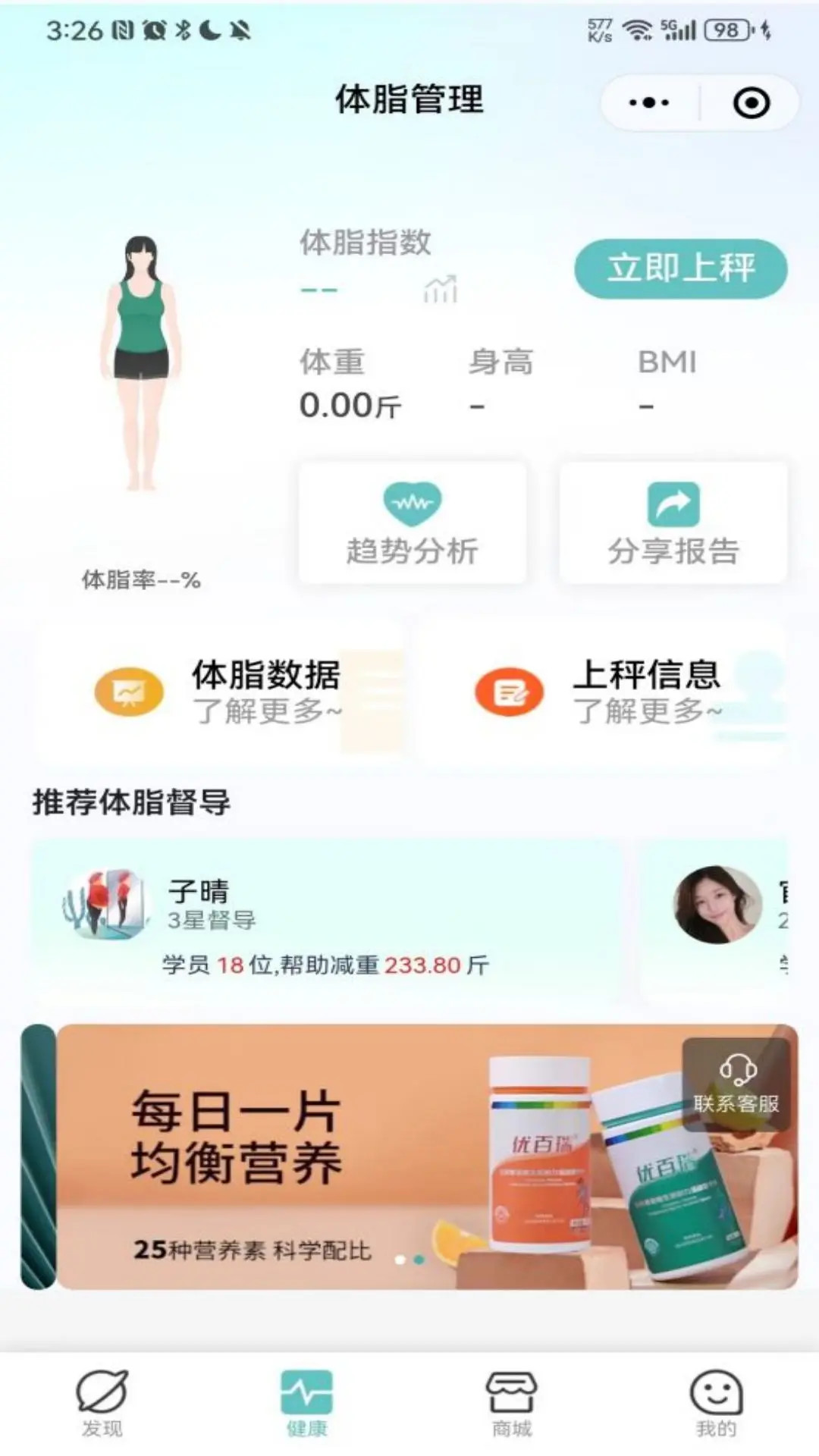 当瘦减脂APP的主要运营方向聚焦于体脂秤。在该APP上线了体脂秤产品,可供用户直接在线购买。体脂秤能够帮助用户知晓自己每次称重时的健康状况,而用户可依据自身的健康情况来制定专属的减肥计划。