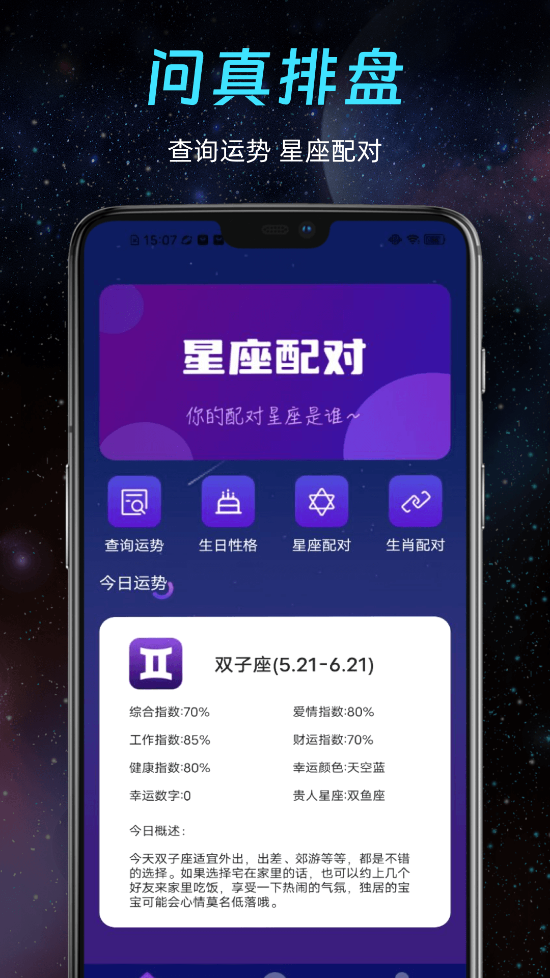我们问针排盘是一款专业的星座分析查询工具软件,具备以下几大特色功能: