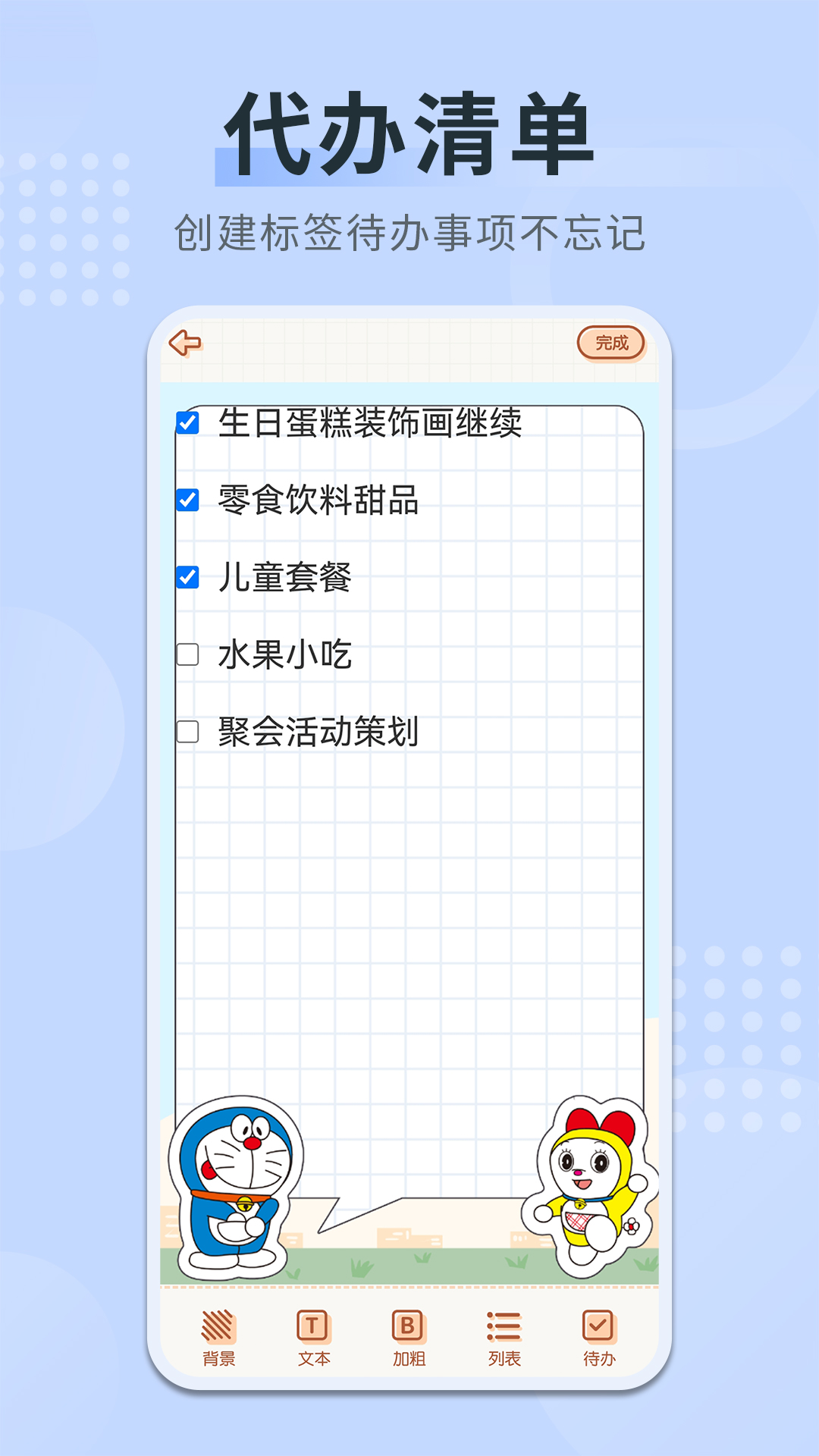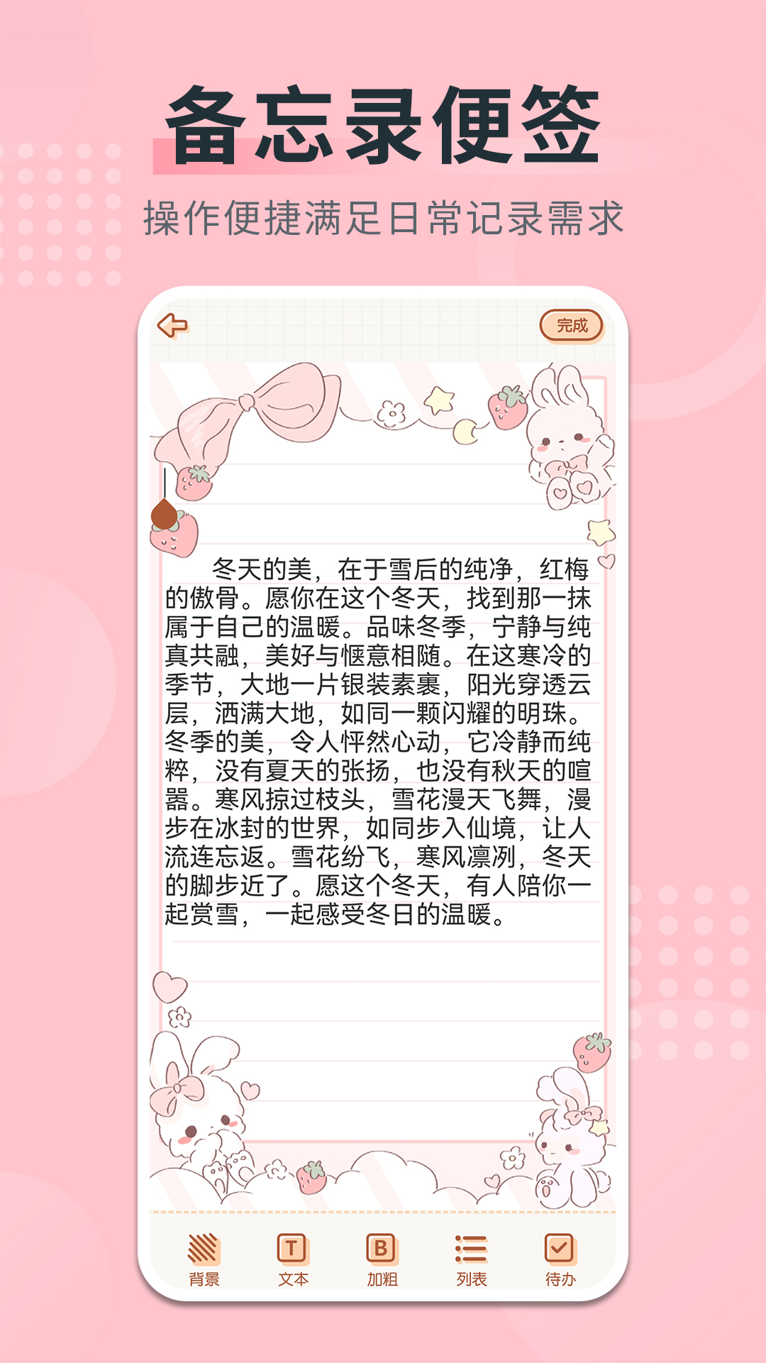 2、背景:多种风格背景和文本,备忘录笔记更生动有趣,还帮助你记录需要采购的物品,备忘录加记事本!