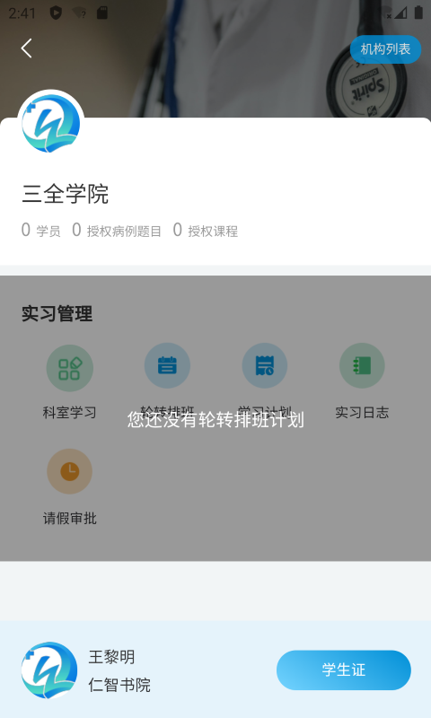 该平台采用校企合作的模式,从而能够提供平台认证服务。它以学校的需求为导向,提供定制化的软件与课程服务,全面保障学生从大一入学直至实习这一在校全过程的学习需求。在助力在校生学习方面,趣卫学习平台能够有效提升他们的临床思维能力与临床技能水平,让学生可以轻松应对各类医学考试。