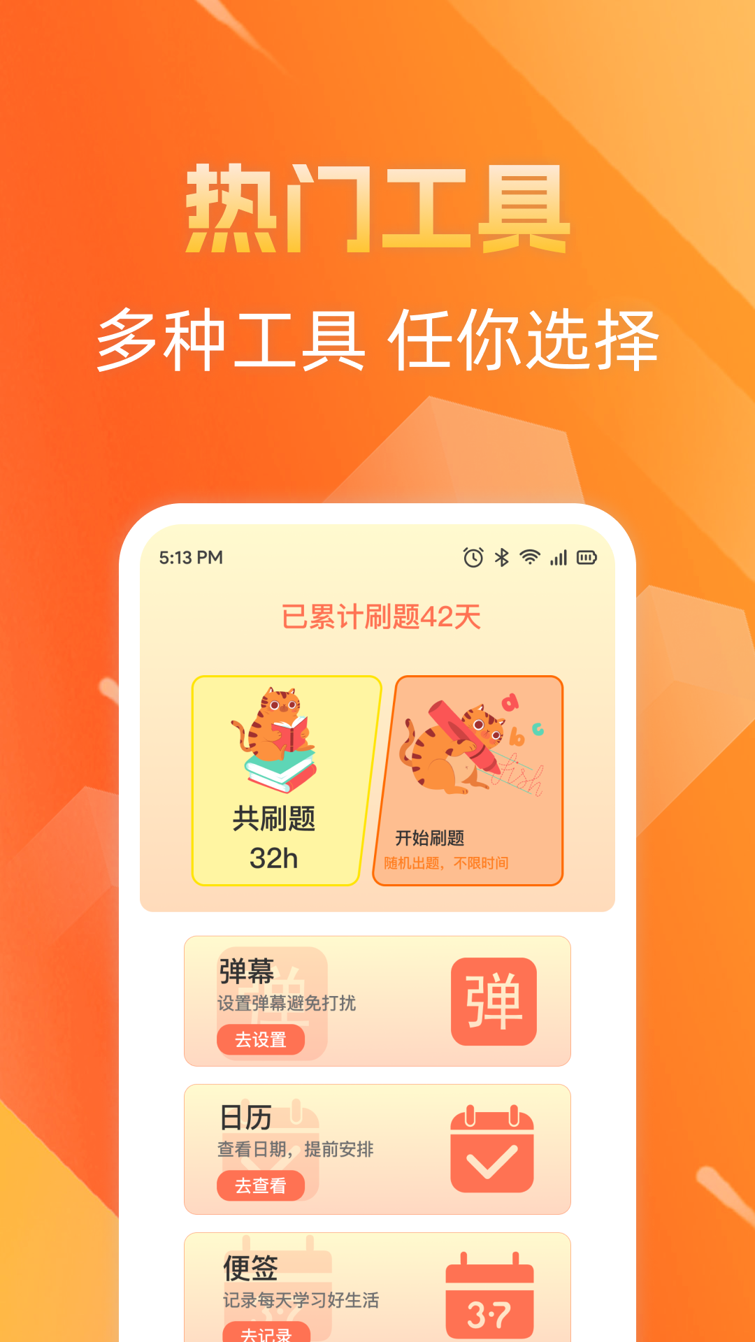 智能刷题:内置丰富题库,支持随机出题,自由刷题模式。累计刷题天数已达的天数,每一次点击都是您坚持与进步的见证。