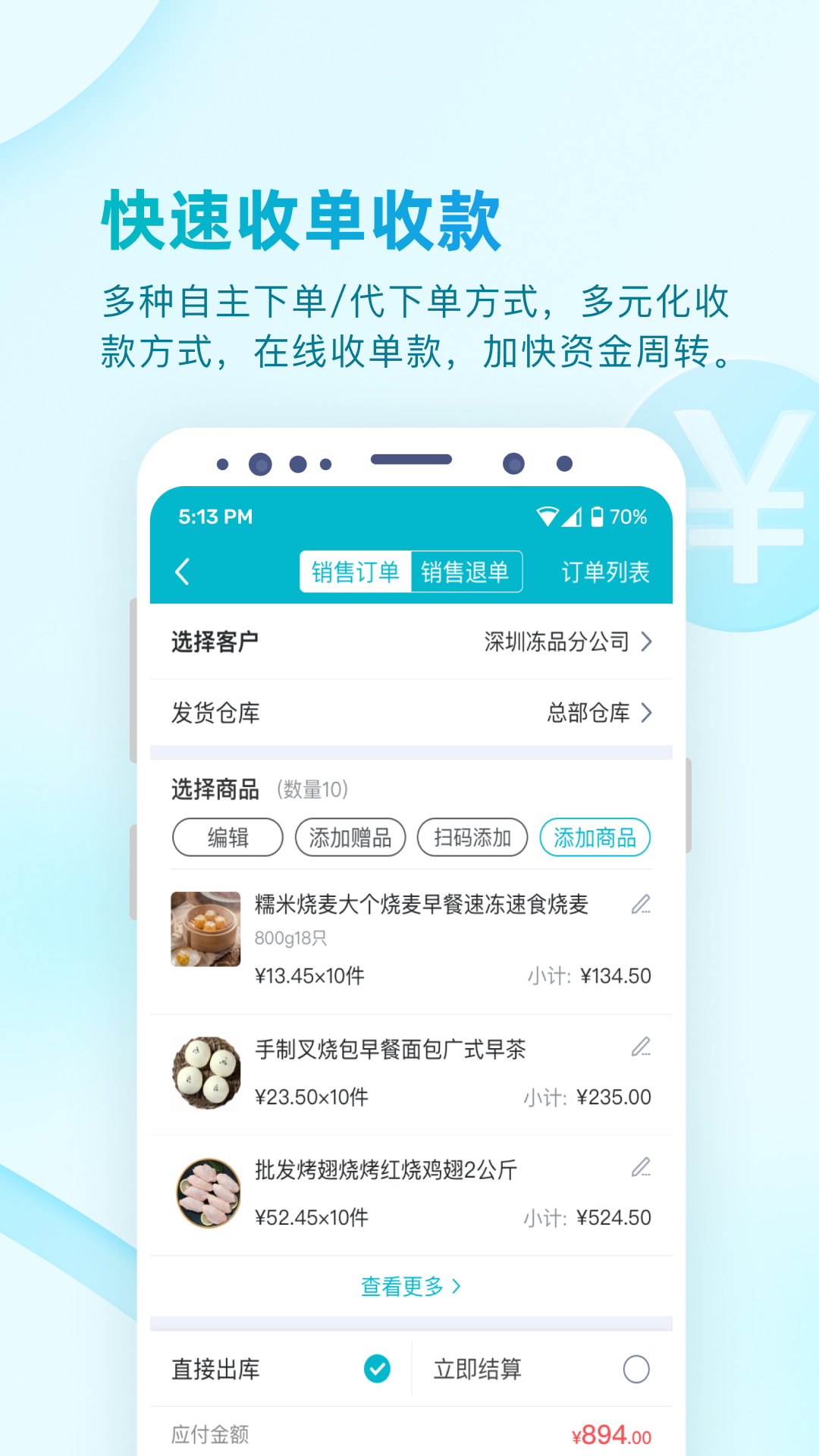 - 客户能够查看实时价格和商品库存,业务员也可通过电脑或手机APP高效代下单。
