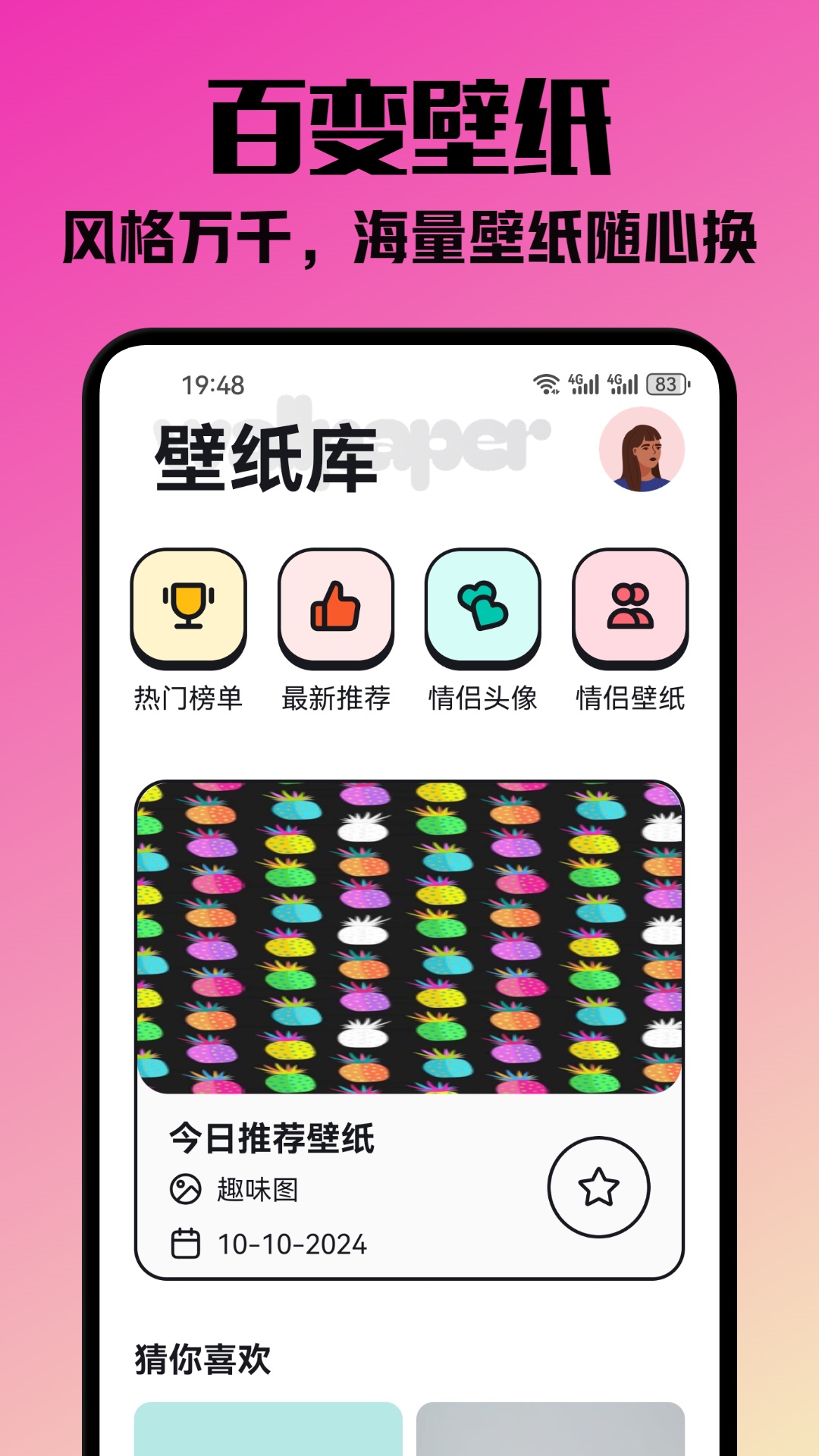 一个集壁纸库、壁纸分类、拍摄修图及自制美图于一体的多功能应用,让您轻松打造个性化手机界面,展现独特审美。还提供了强大的拍摄修图功能。无论是日常随手拍还是专业摄影作品,您都可以在这里进行精细的修图处理。丰富的滤镜、贴纸、文字等素材,助您轻松打造出别具一格的美图。