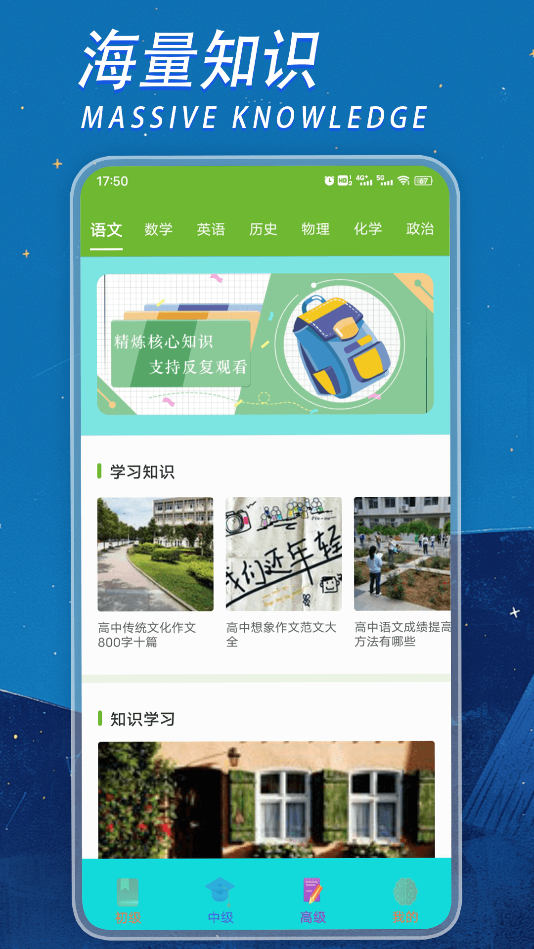 同时,它还精心划分了初级、中级、高级三个学习阶段,让您可以循序渐进不断进步!